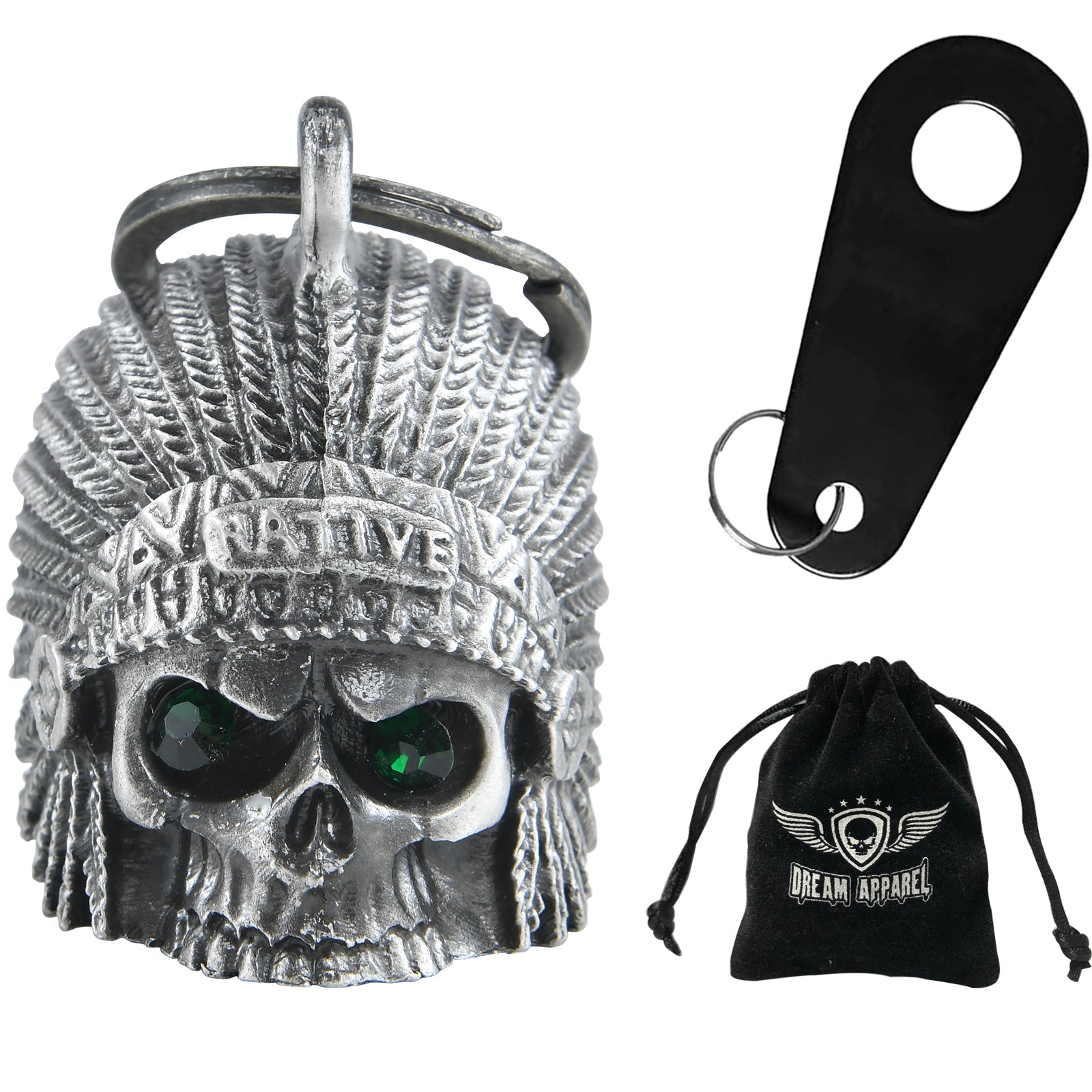 Dream Apparel Indian Skull Head Green Eyes Motorcycle Bell, for Good Luck 3-D, Light Weight is backordered and will ship as soon as it is back in stock.