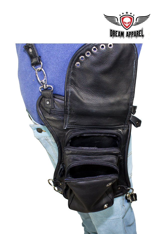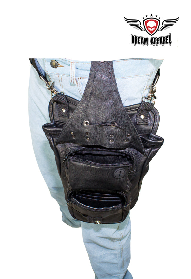 Black Multi-Pocket Premium Cowhide Leather Chaps with removable lining