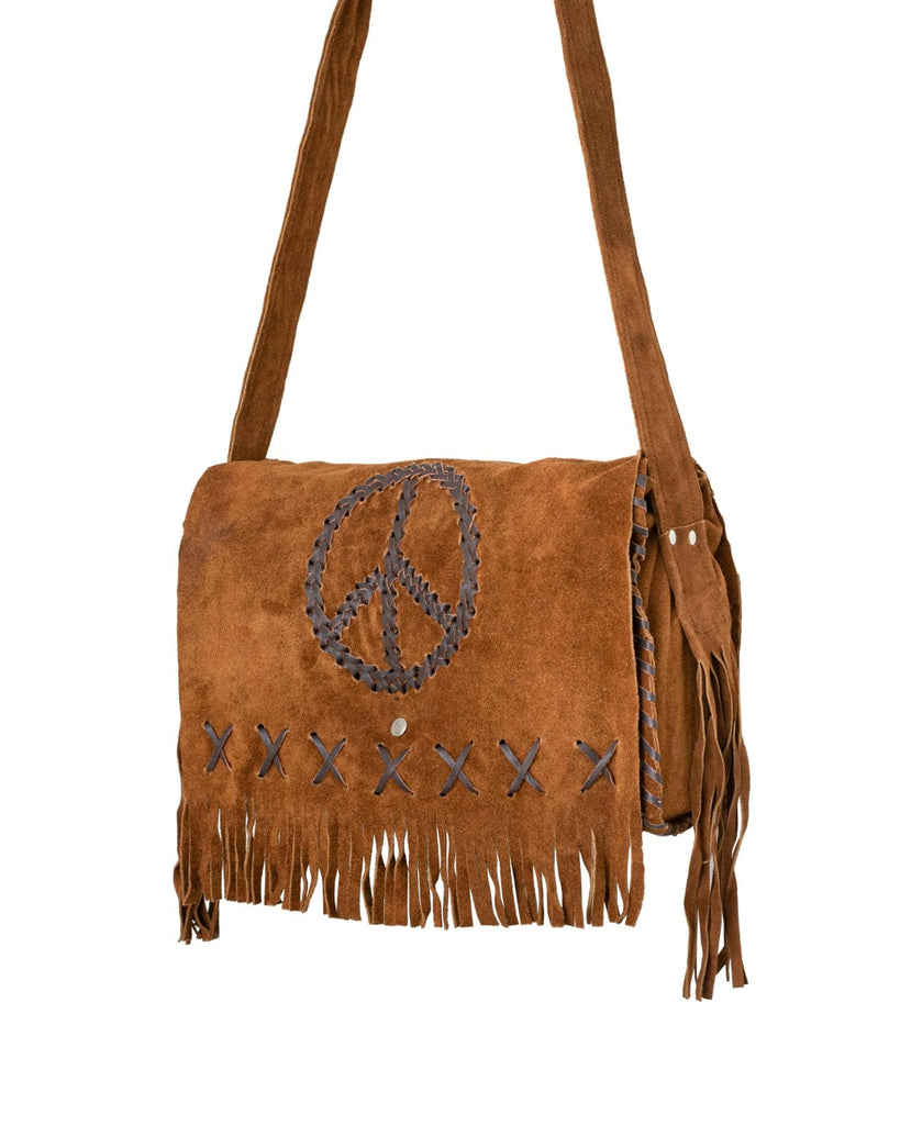 Brown Leather Western Bag with Peach Sign