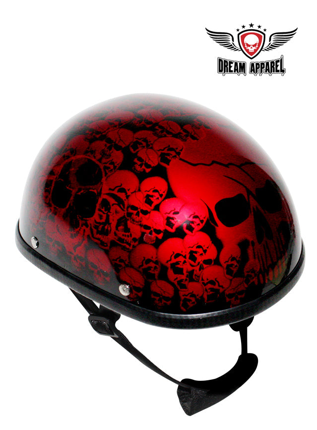 Burgundy DOT Approved Motorcycle Helmet W/ Boneyard Graphic