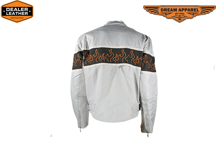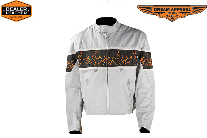 Light Textile Motorcycle Jacket w/ Flames Design - Mens