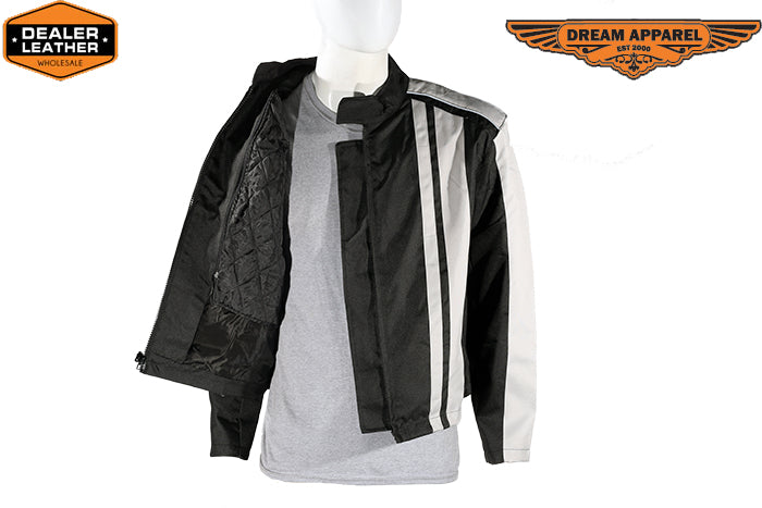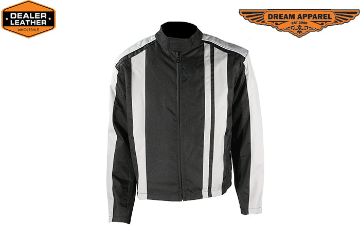 Light Textile Motorcycle Jacket w/ White Multi-Striped Design - Mens