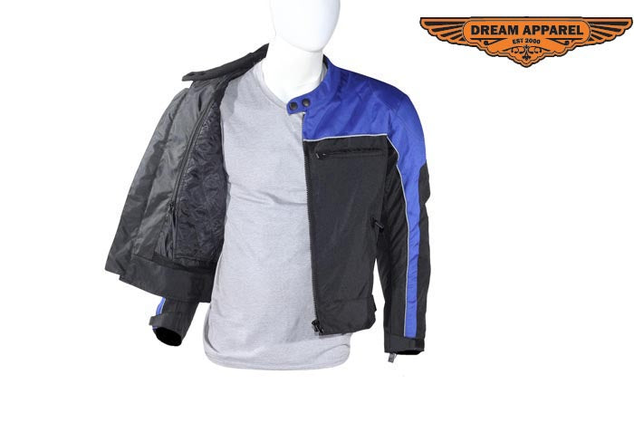 Mens Biker Textile Jacket With Reflective Strip On Front & Back