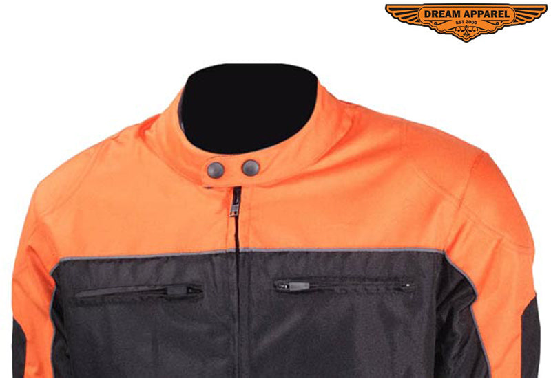 Mens Black and Orange Mesh and Nylon Motorcycle Jacket