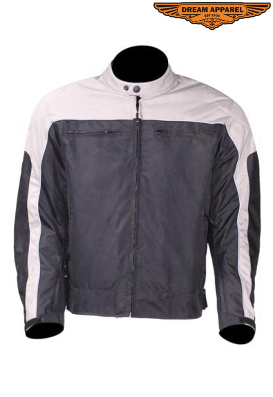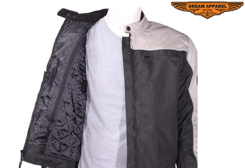 Mens Black and Silver Mesh and Nylon Motorcycle Jacket