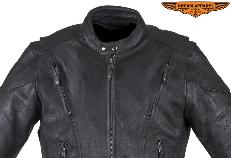 Mens Racer Style Leather Jacket with Zippered Cuffs