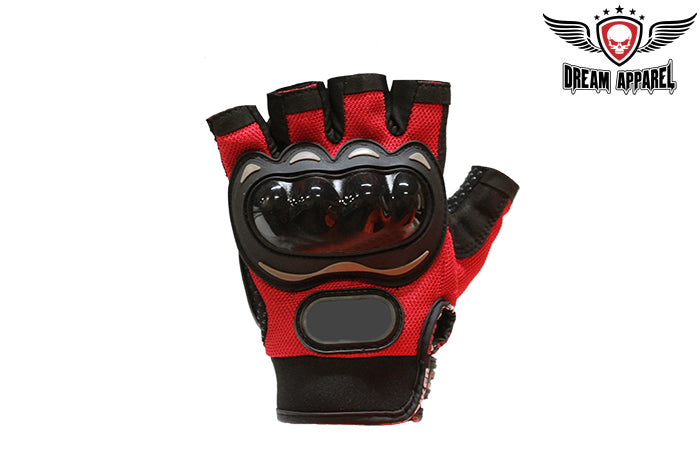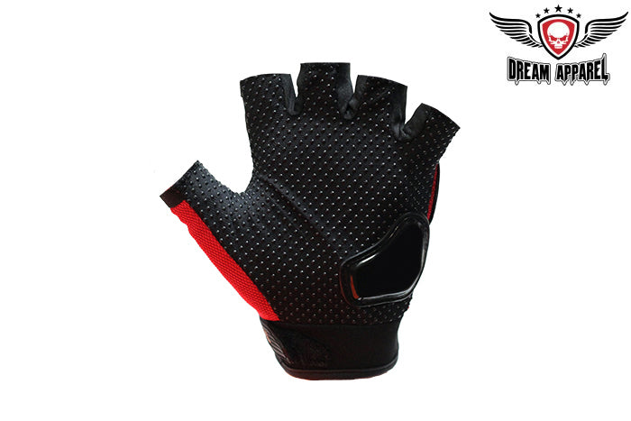 Mens Red Fingerless Mesh Racing Gloves