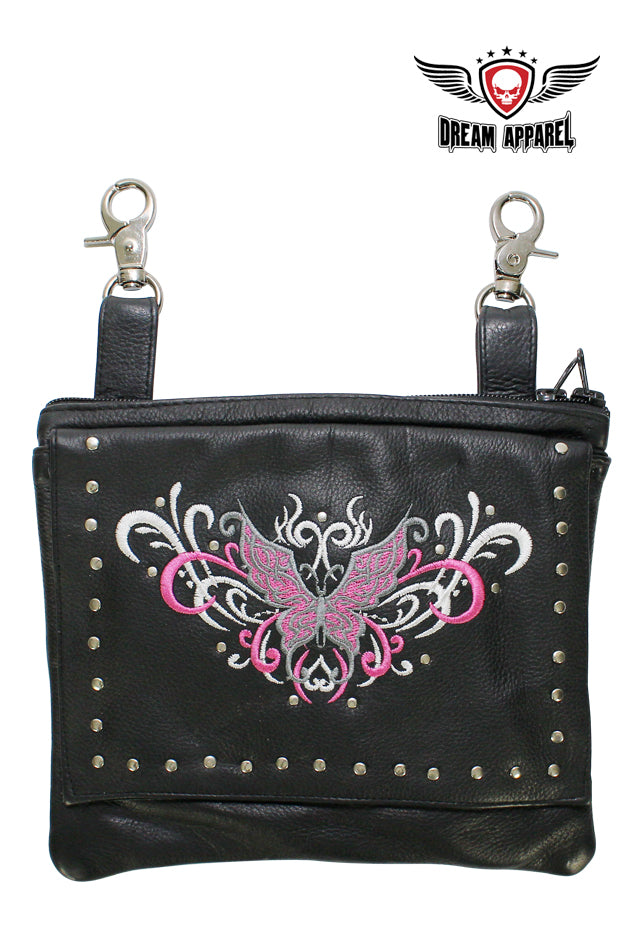 Naked Cowhide Leather Pink Butterfly Belt Bag W/ Studs