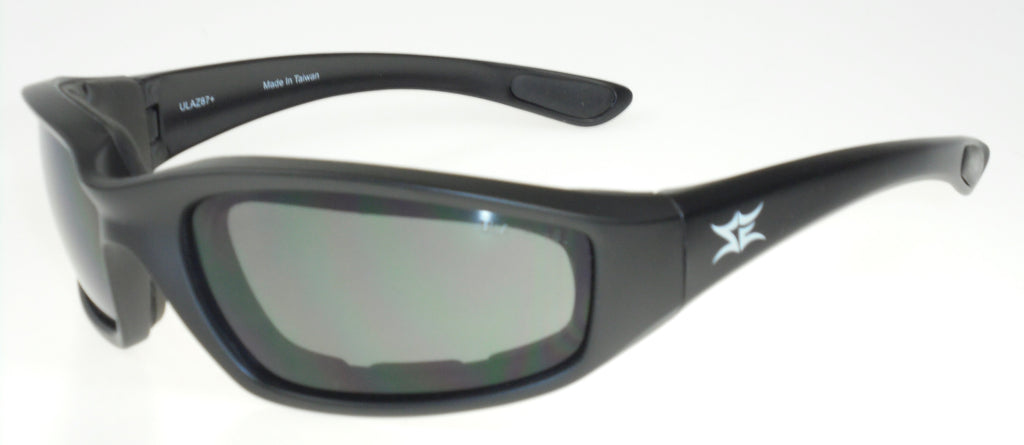 Spider Eyez™ Eva Foam Padded Motorcycle Sunglasses, Shatterproof Polycarbonate Lens, Matte Black