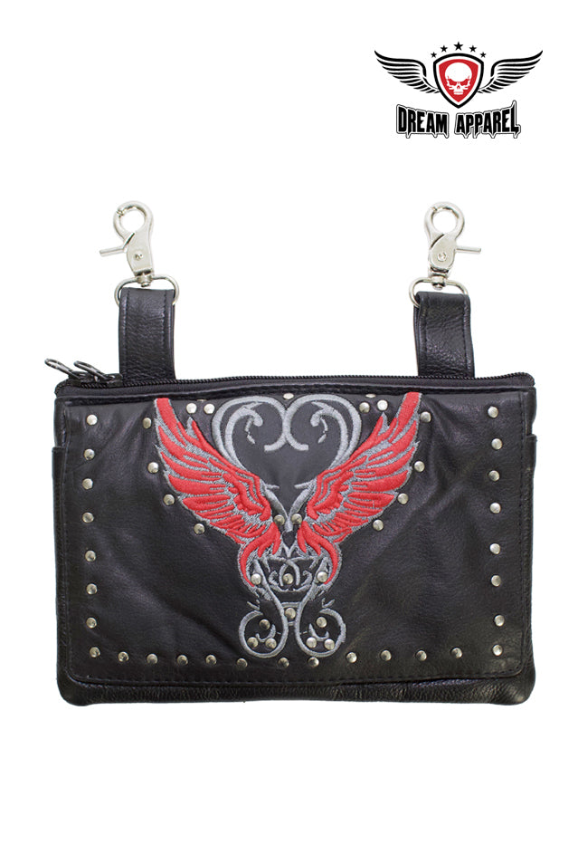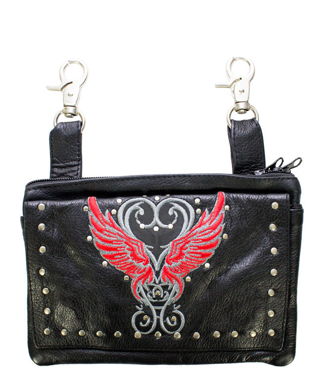 Studded Naked Cowhide Leather Belt Bag with Red Wings