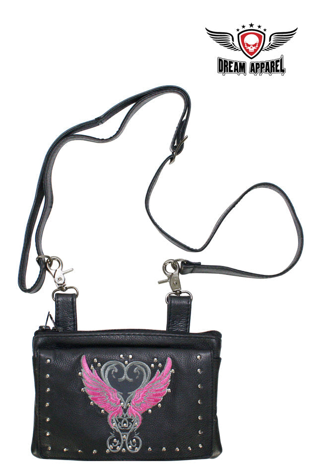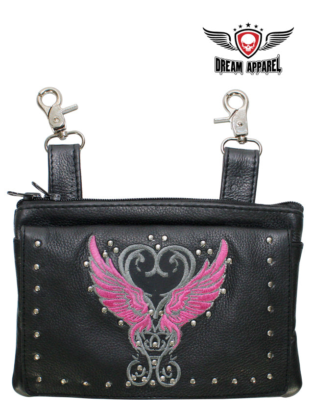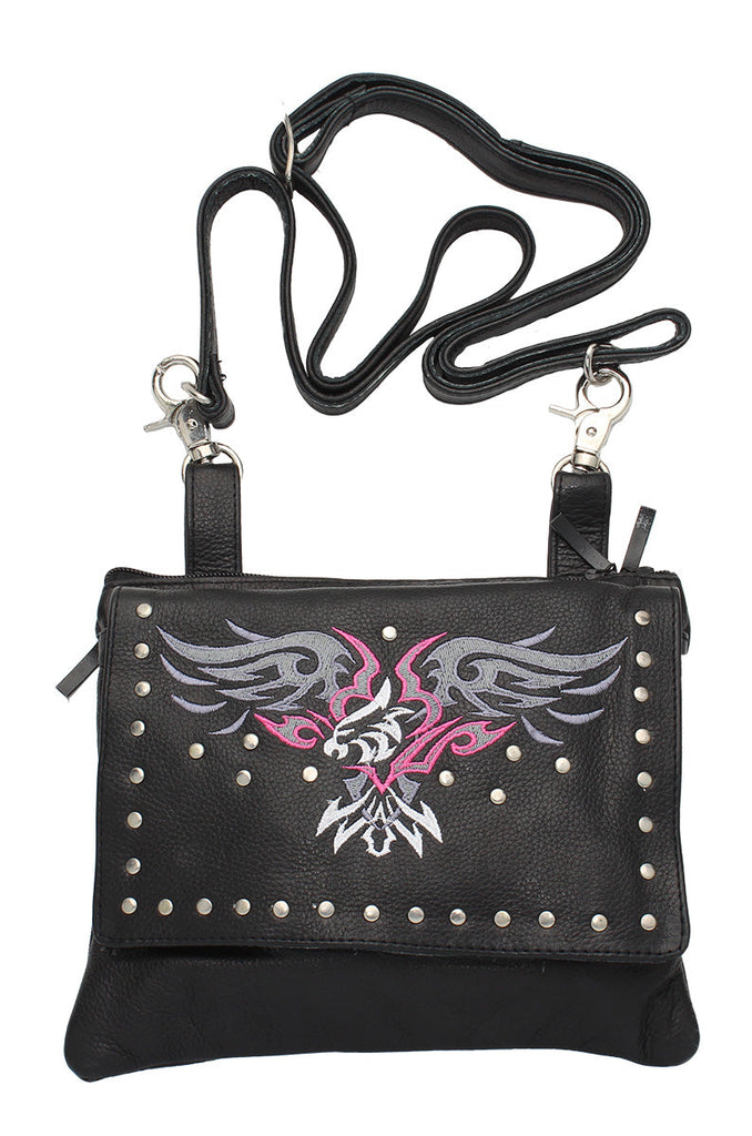 Studded Naked Cowhide Leather Gun Holster Belt Bag with Pink & Silver Eagle