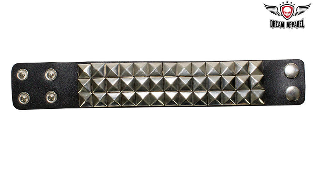 Stainless Steel Biker Bracelet With 3 Medium Skulls