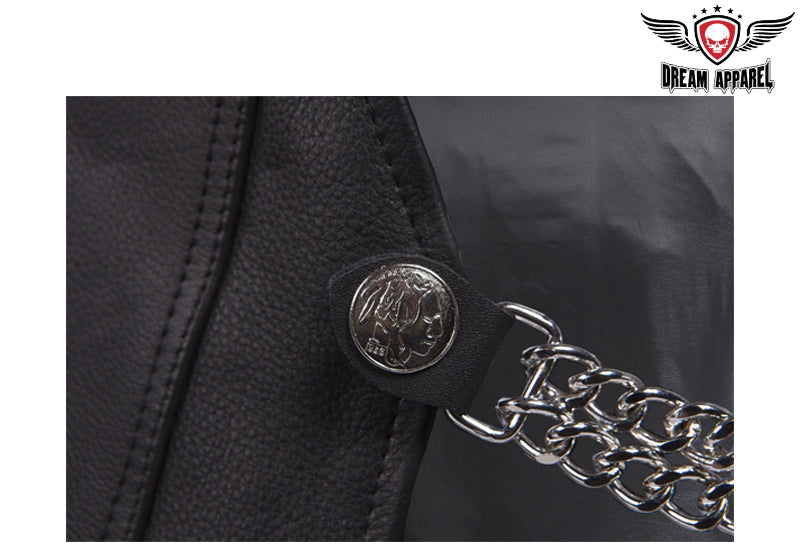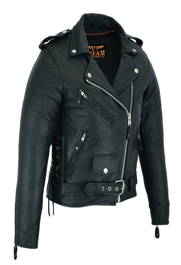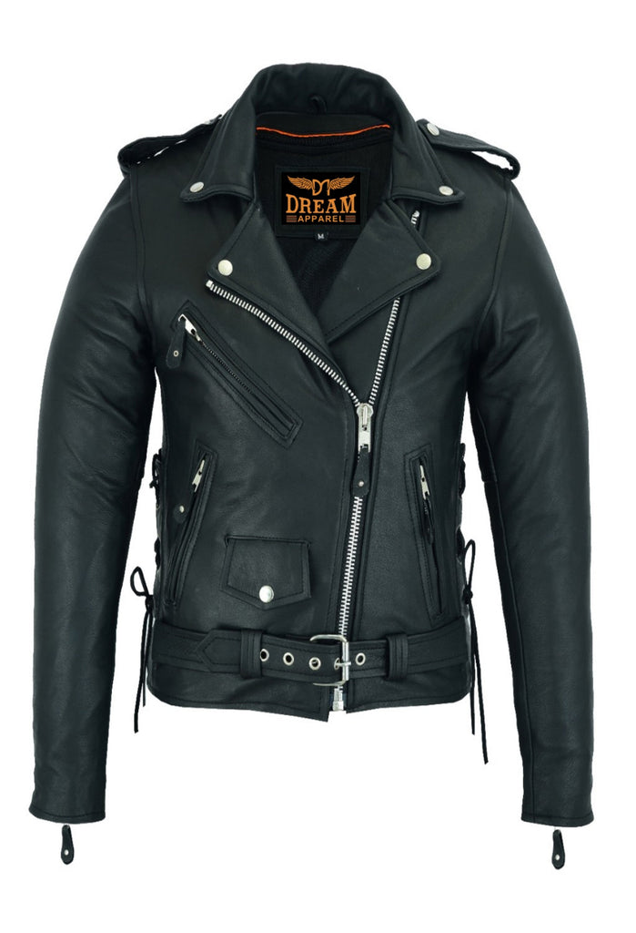 Women Motorcycle Classic Leather Jacket Premier Cowhide Leather Gun Pockets Side Laces