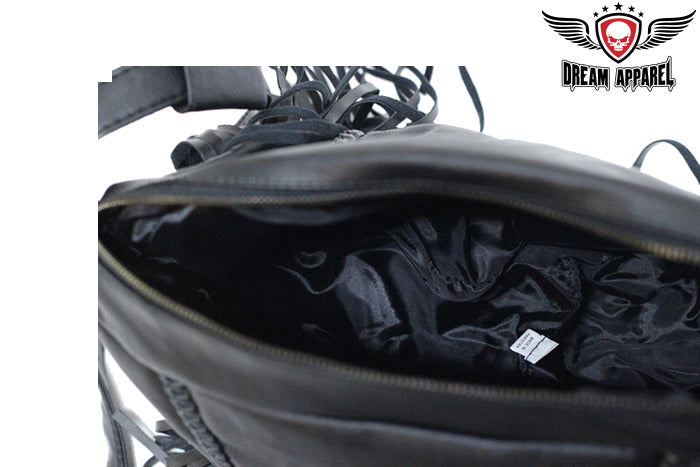 Women Black Top with Beads, Bone, Braid, and Fringe