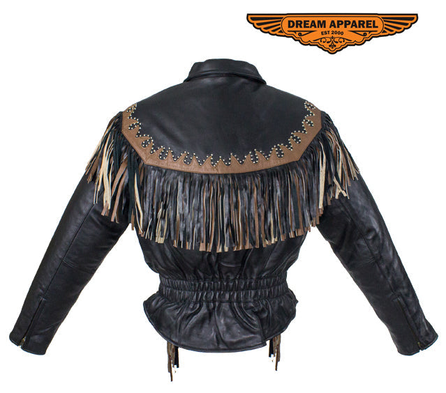 Women Brown Western Style Vest with Fringes and Beads Genuine Leather