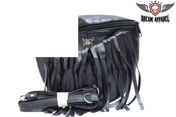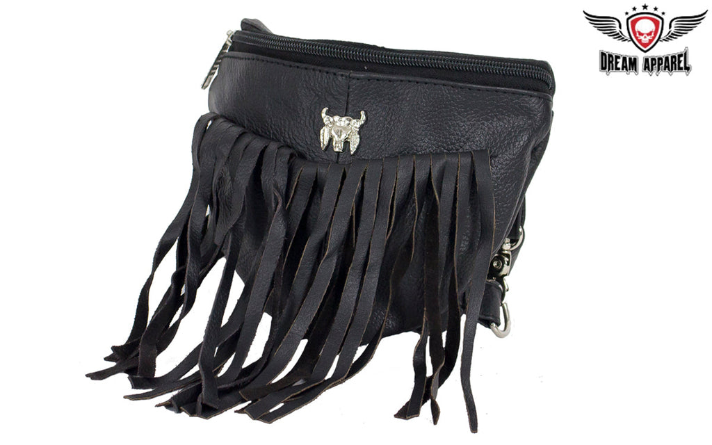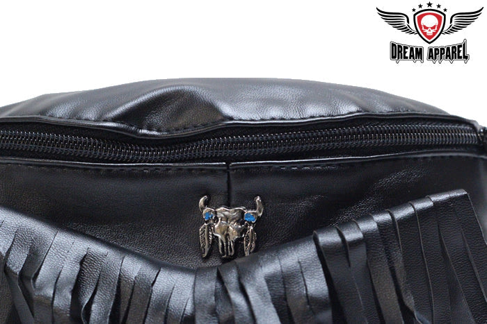 Women's Black Leather Jacket With Beads, Studs, Bone & Fringe