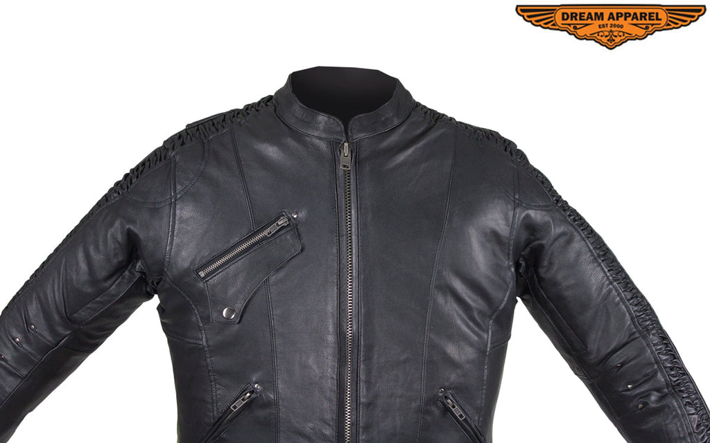Women's Black Lambskin Jacket with Concealed Carry Pockets