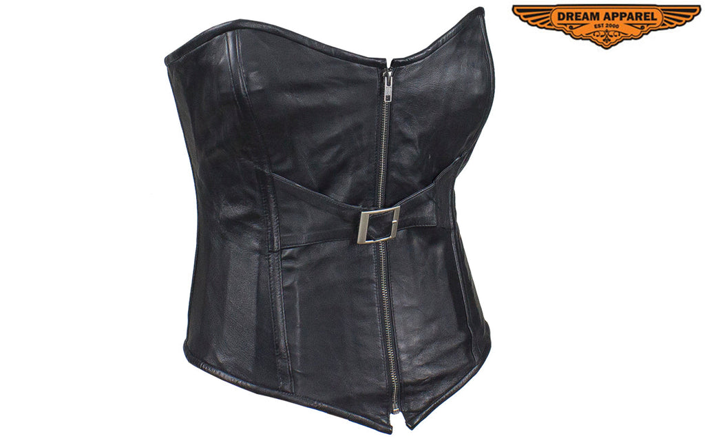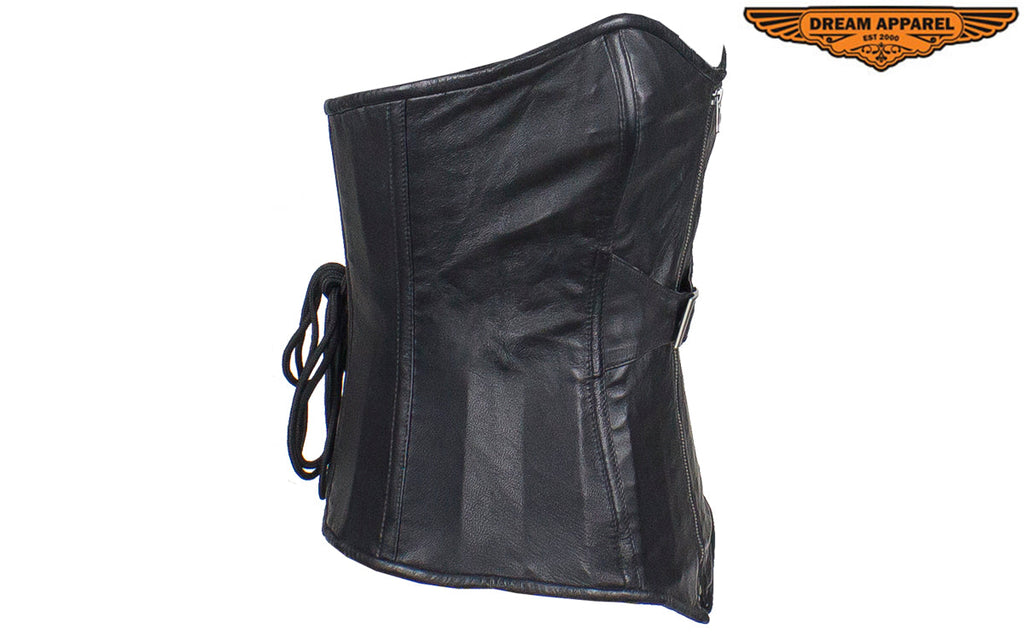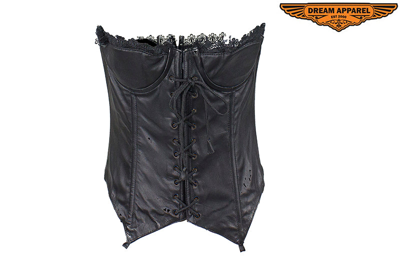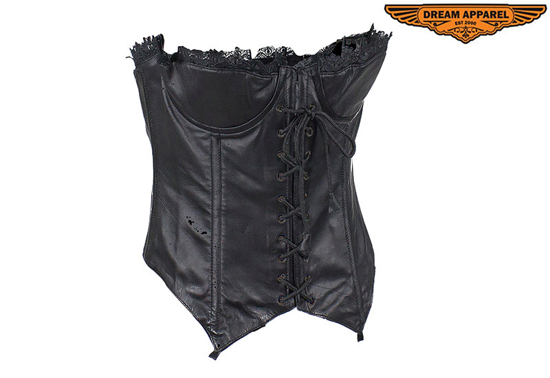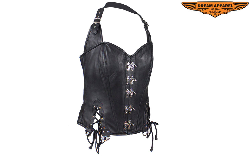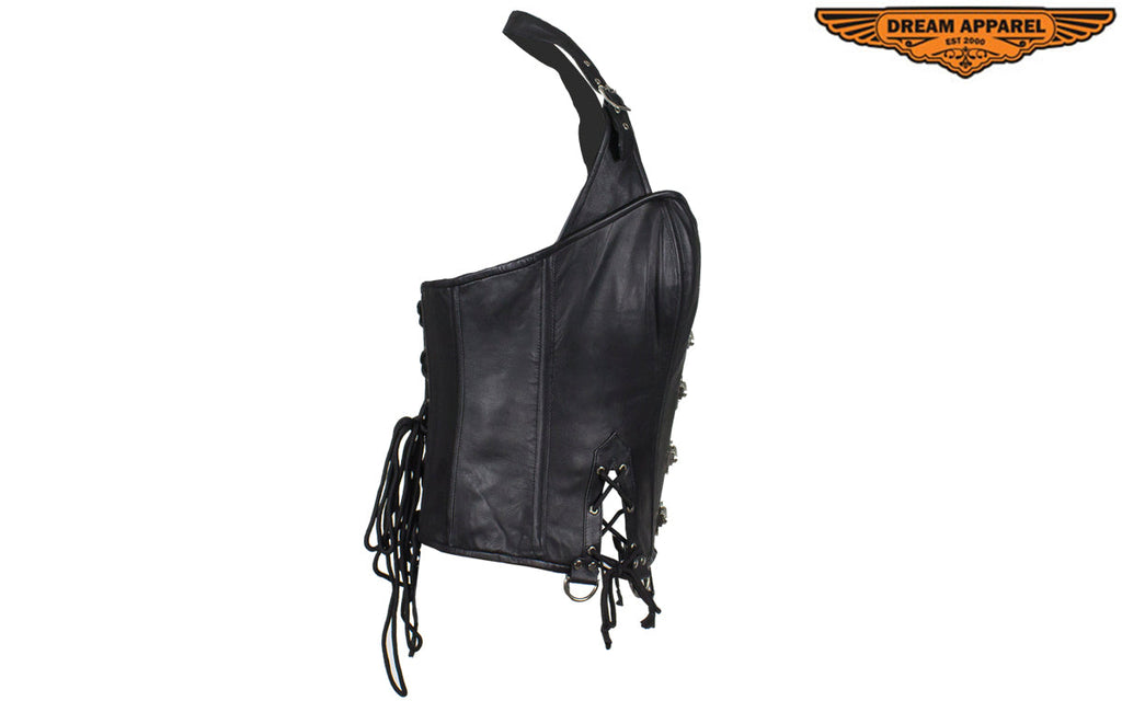 Women's Distressed Brown Leather Motorcycle Vest With Side Laces