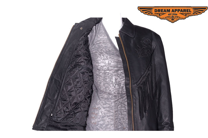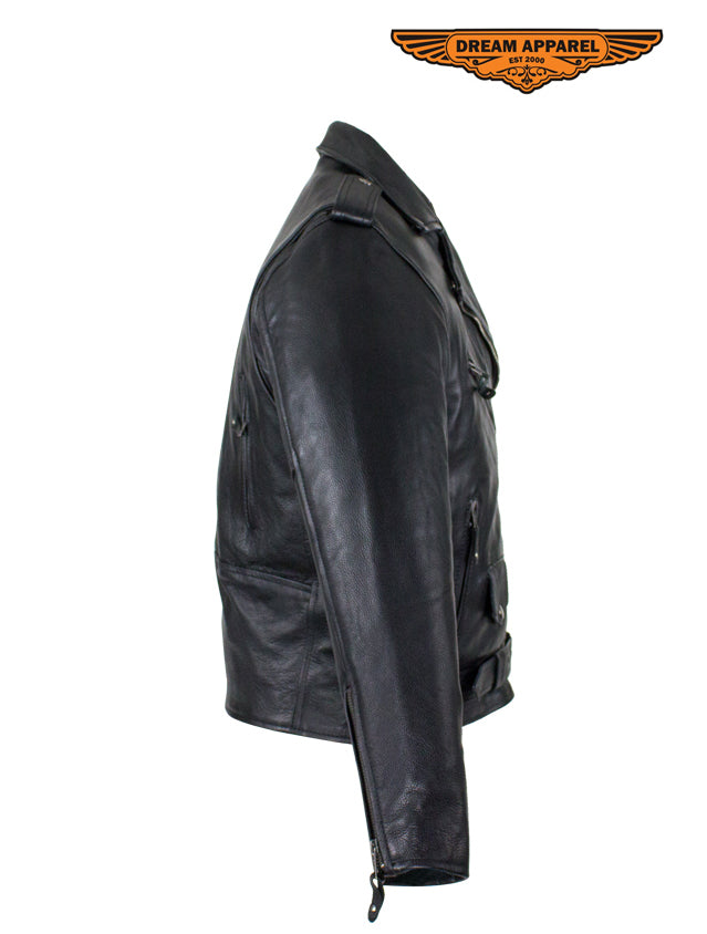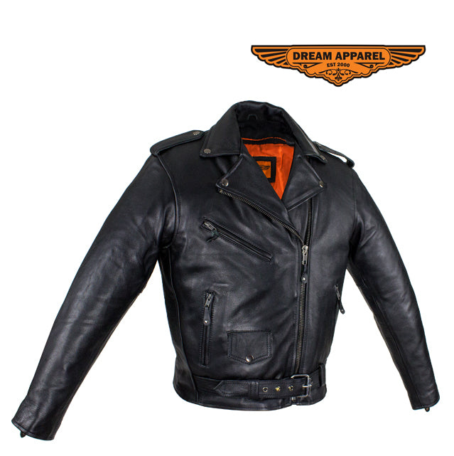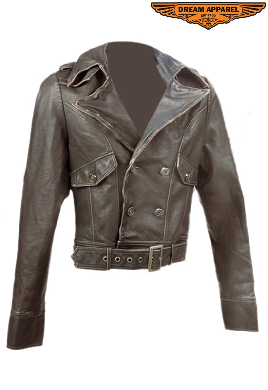 Womens Black Naked Cowhide Leather Motorcycle Jacket W/ Half Belt