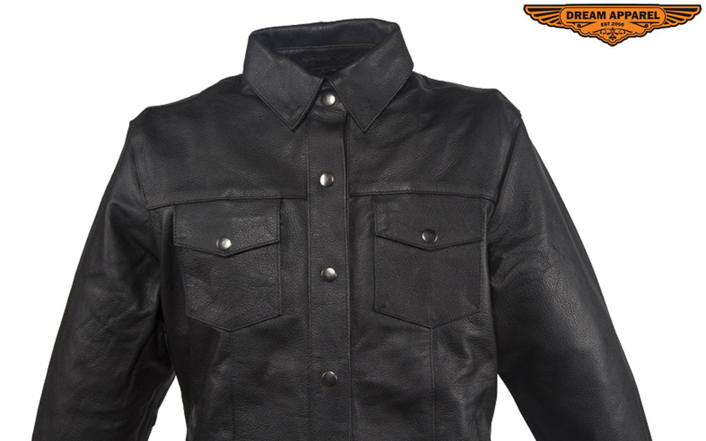 Womens Cowhide Leather Motorcycle 7 Pockets Vest with Conceal Carry Pockets