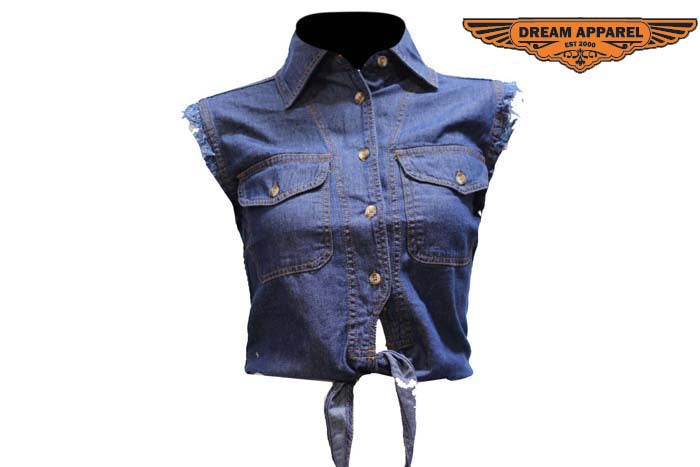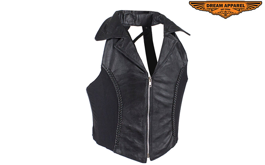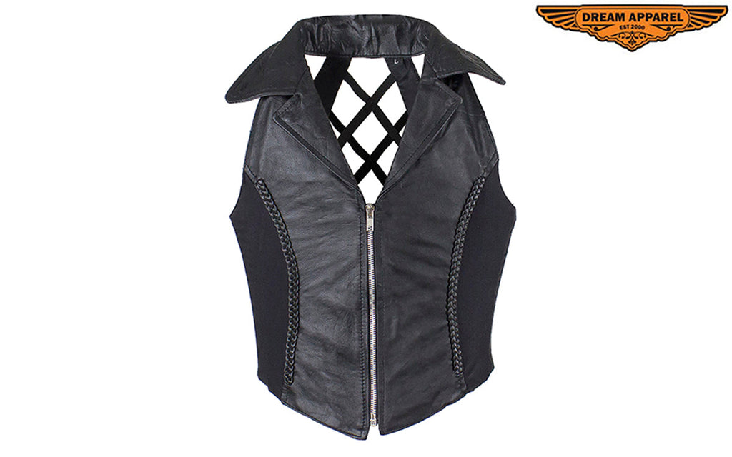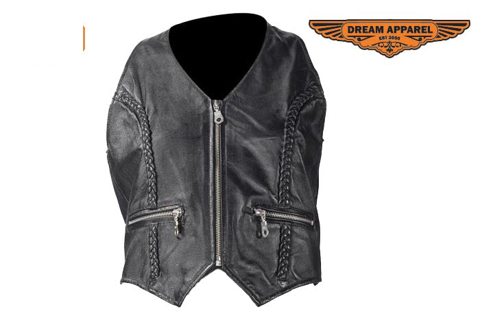 Womens Distressed Brown Leather Motorcycle Vest With Side Laces
