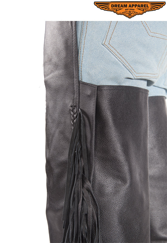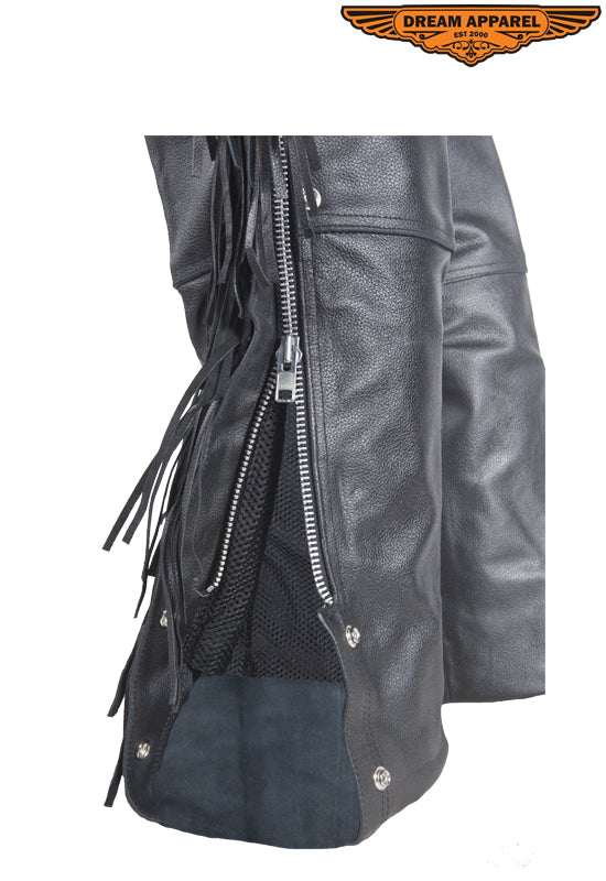 Looking to update your biker look? Take a look at our leather chaps which feature a zipper that runs along the side of pants until it reaches the snaps at the bottom.