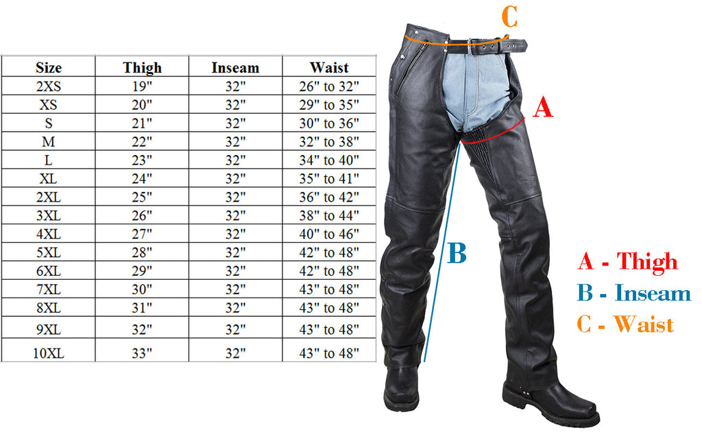 These orange stripe chaps are heavy duty top grade leather that also has a soft touch to give it a great feel. Chaps also have a zipper that goes down to the bottom with a flap that hides the mesh lining and zipper.