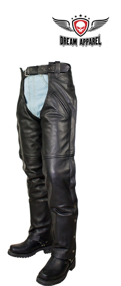 Black Split Cowhide Leather Chaps W/ Mesh Lining