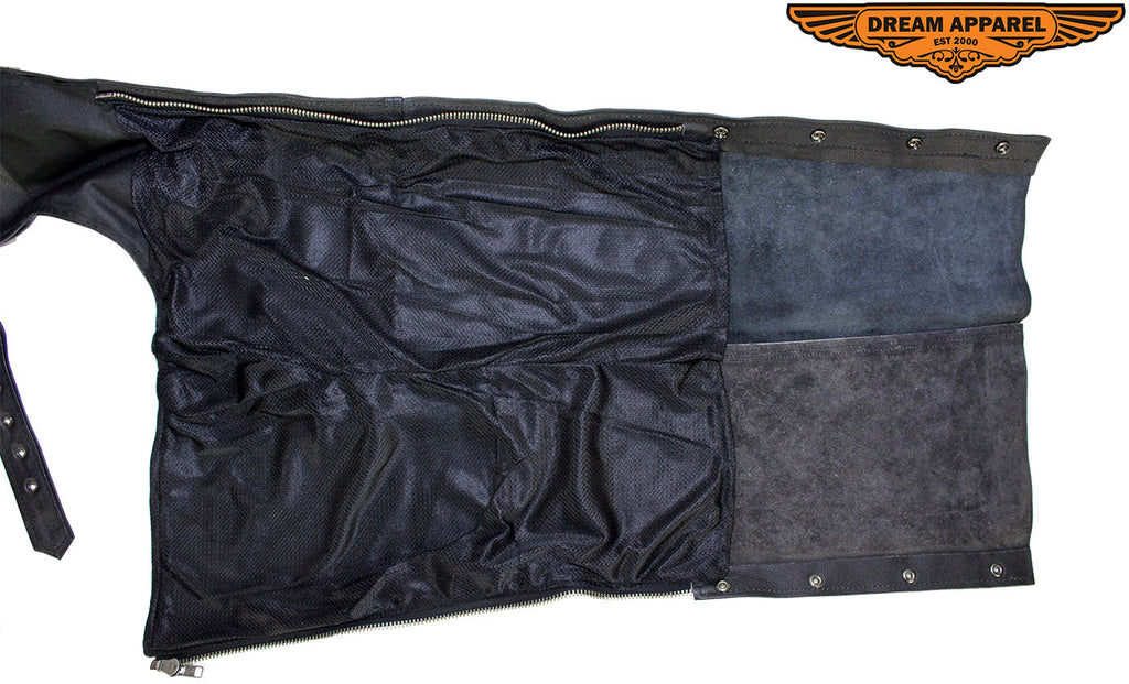 Braided Naked Cowhide Leather Chaps W/ Mesh Lining - Black