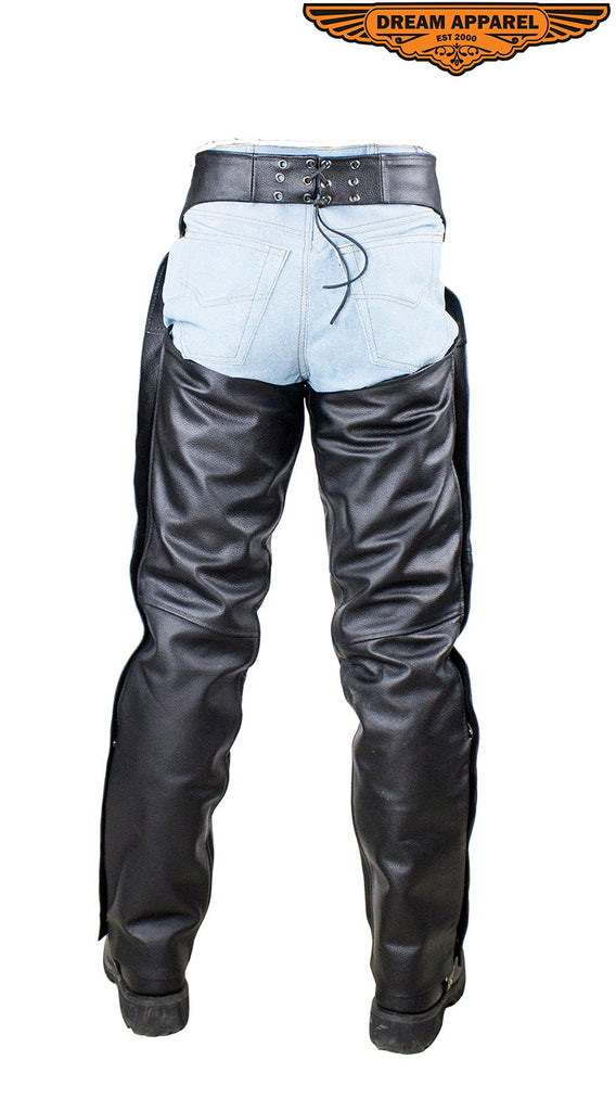 Dream Apparel Plain Black Split Leather Chaps With Zipout liner