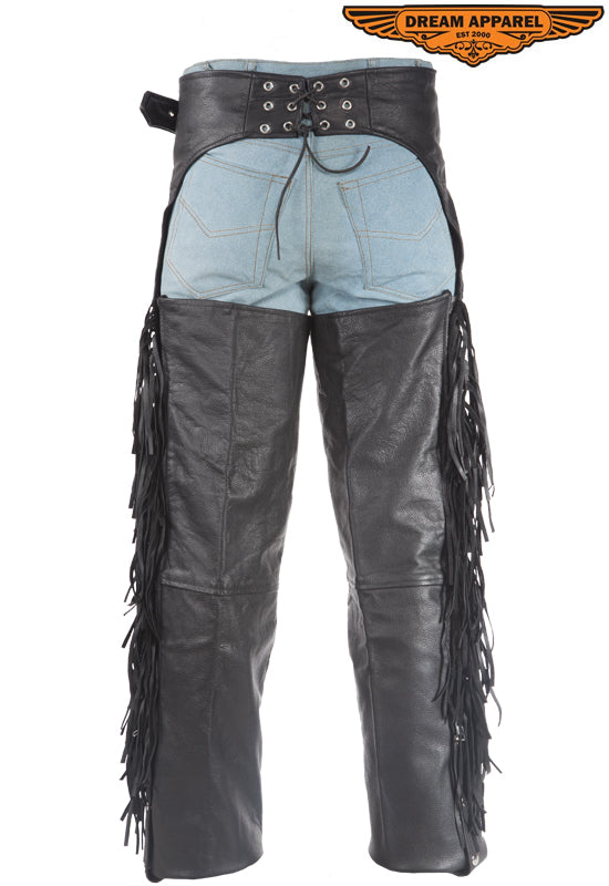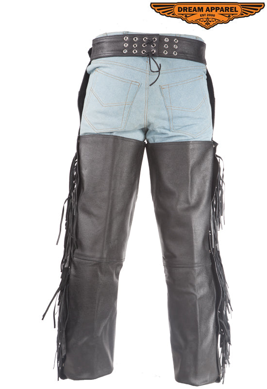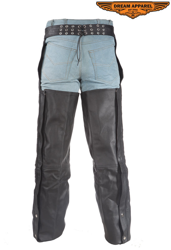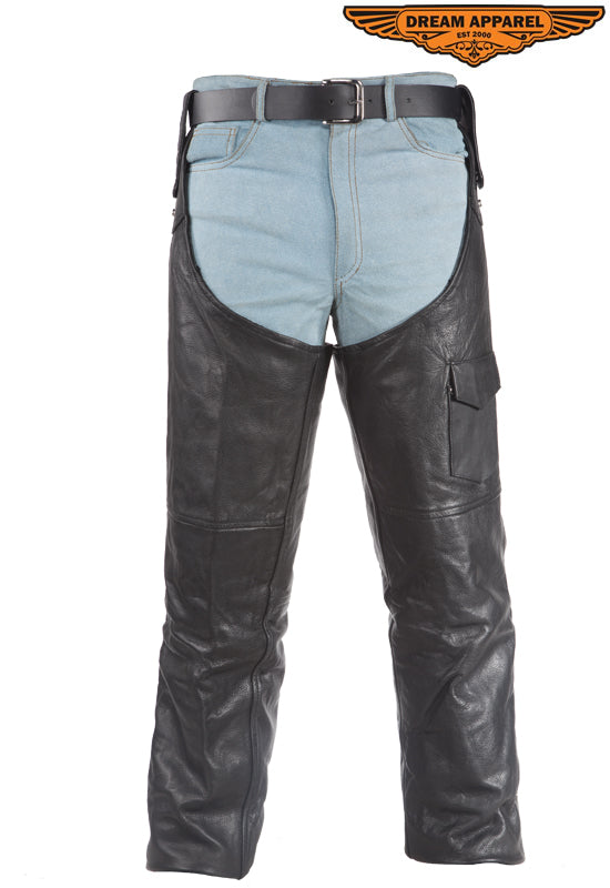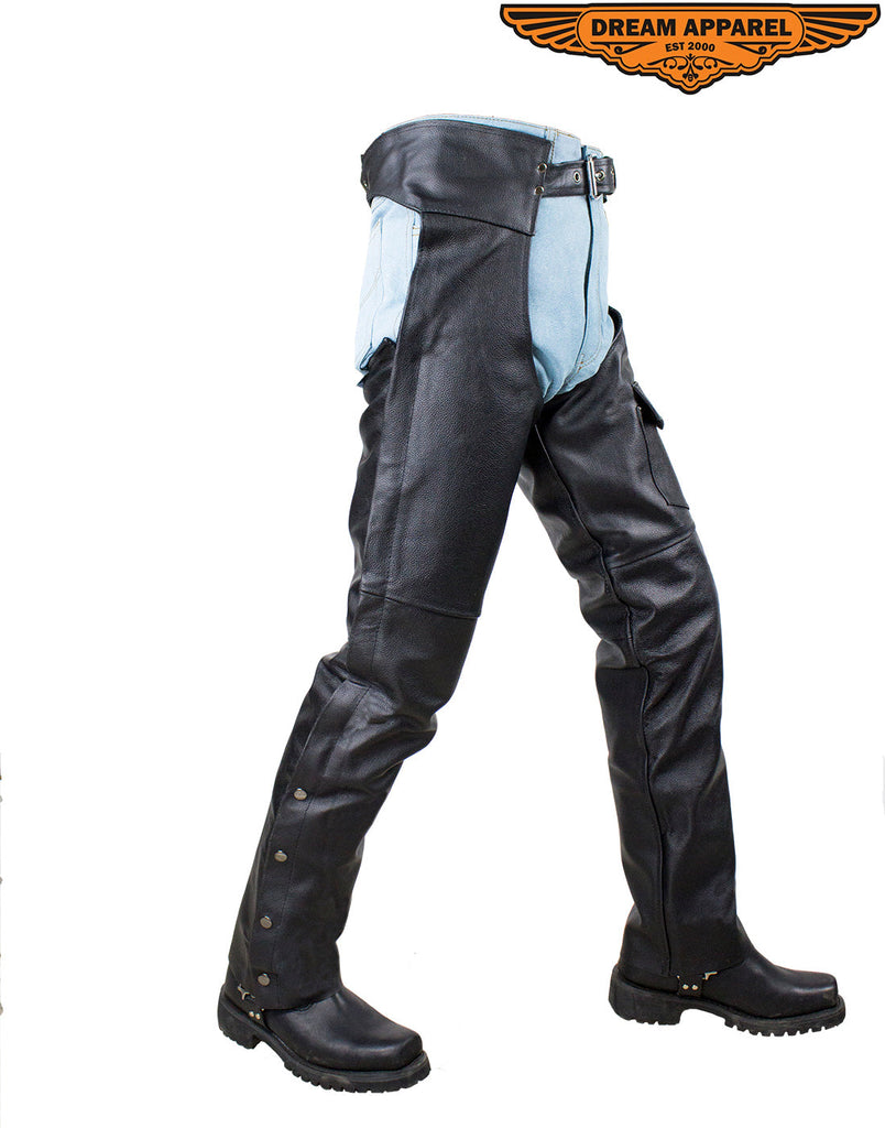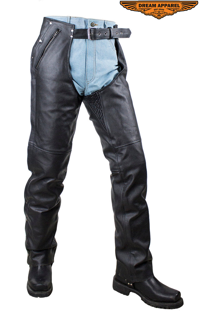 Dream Apparel Plain Black Split Leather Chaps With Zipout liner