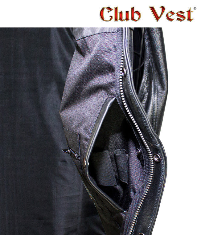 This customer labeled vest was made for riders that demand protection, and comes with two deep concealed gun pockets with elastic straps