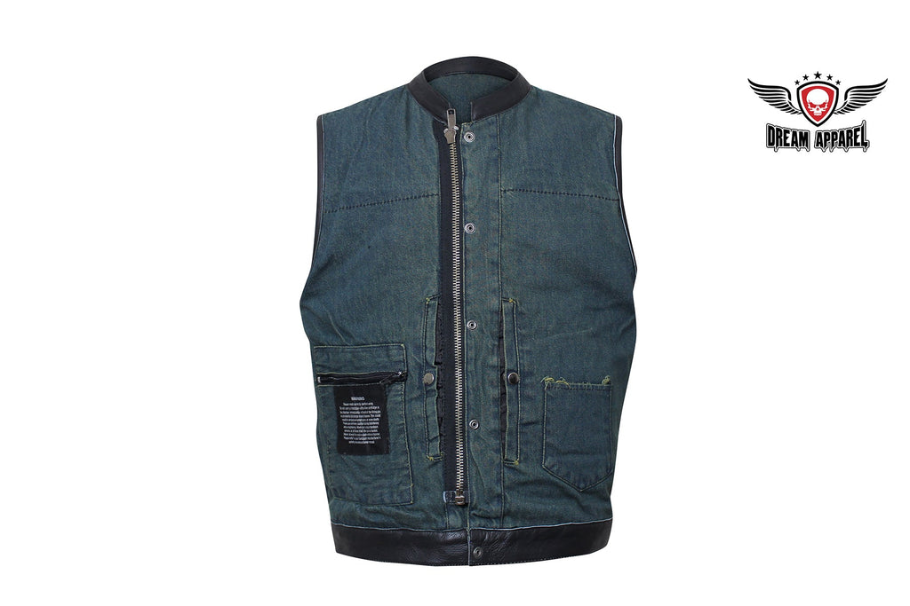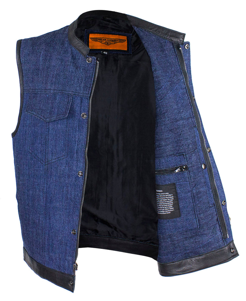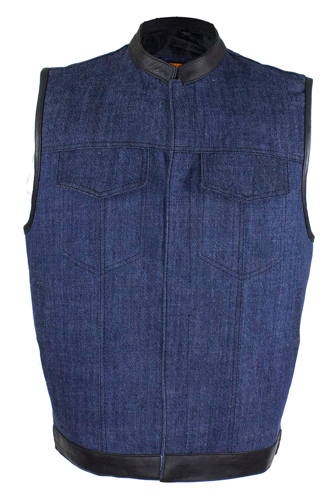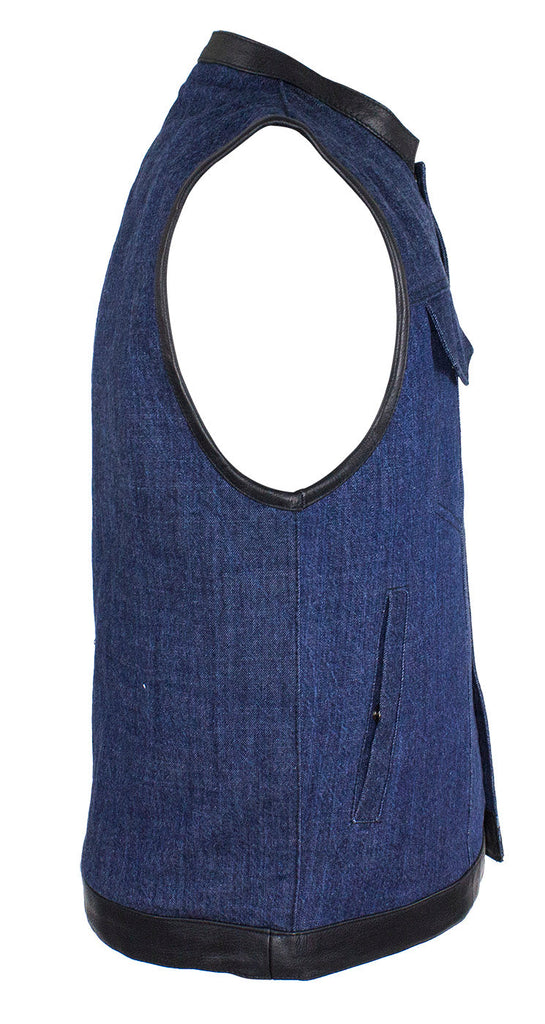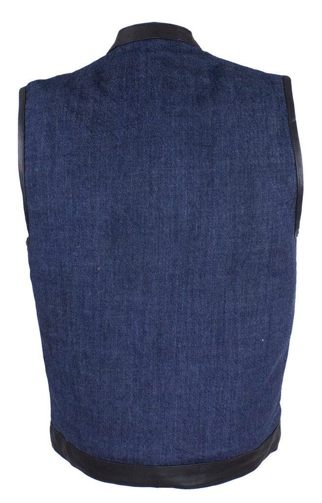 If you ride and carry a concealed handgun, then you're going to love our terrific club vest with two deep concealed gun pockets inside with button snaps, an inside slip pocket, and an inside zippered pocket. Genuine leather trim adorns the collar, arms, and bottom while the front zips up with button snaps, keeping you comfortable wherever the road takes you. Two slip pockets on the waist, two button snap breast pockets, one with a sunglasses holder, let you bring everything else you may need for the trip. The full back panel lets you display your club colors and patches making this popular vest one of our best sellers. Be sure to get your order in today.