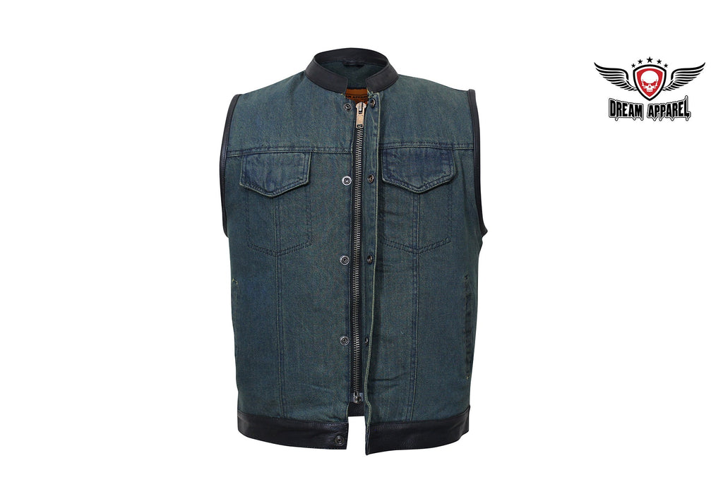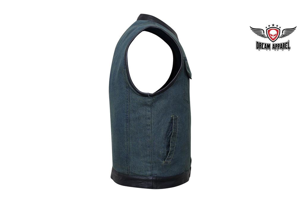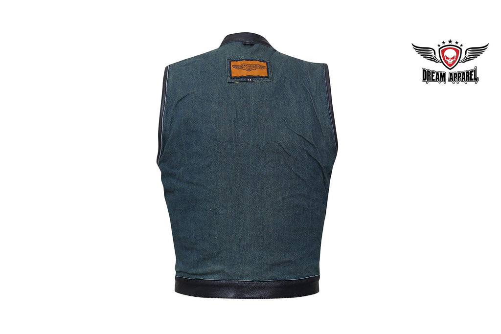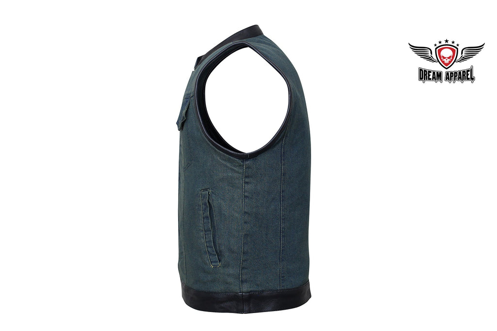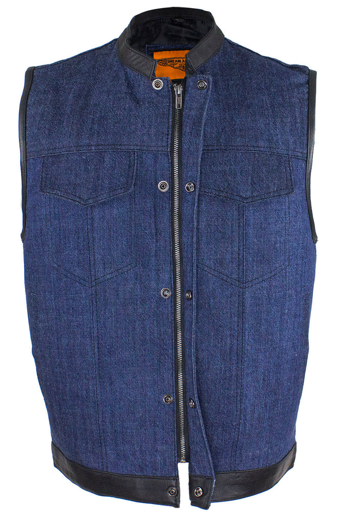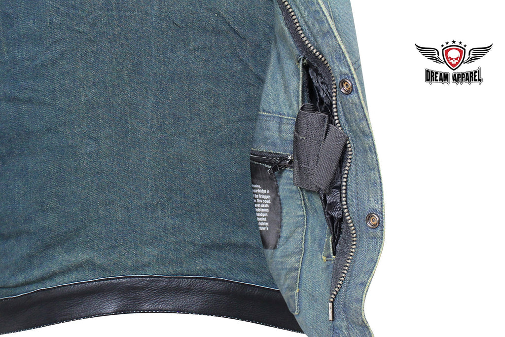If you ride and carry a concealed handgun, then you're going to love our terrific club vest with two deep concealed gun pockets inside with button snaps, an inside slip pocket, and an inside zippered pocket. Genuine leather trim adorns the collar, arms, and bottom while the front zips up with button snaps, keeping you comfortable wherever the road takes you. Two slip pockets on the waist, two button snap breast pockets, one with a sunglasses holder, let you bring everything else you may need for the trip. The full back panel lets you display your club colors and patches making this popular vest one of our best sellers. Be sure to get your order in today.