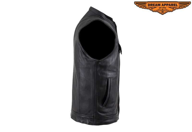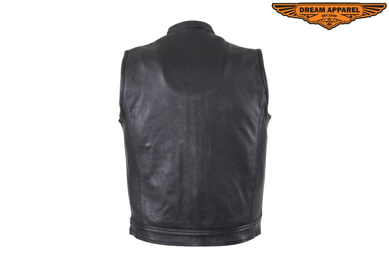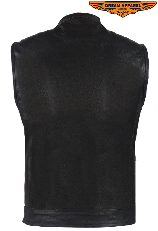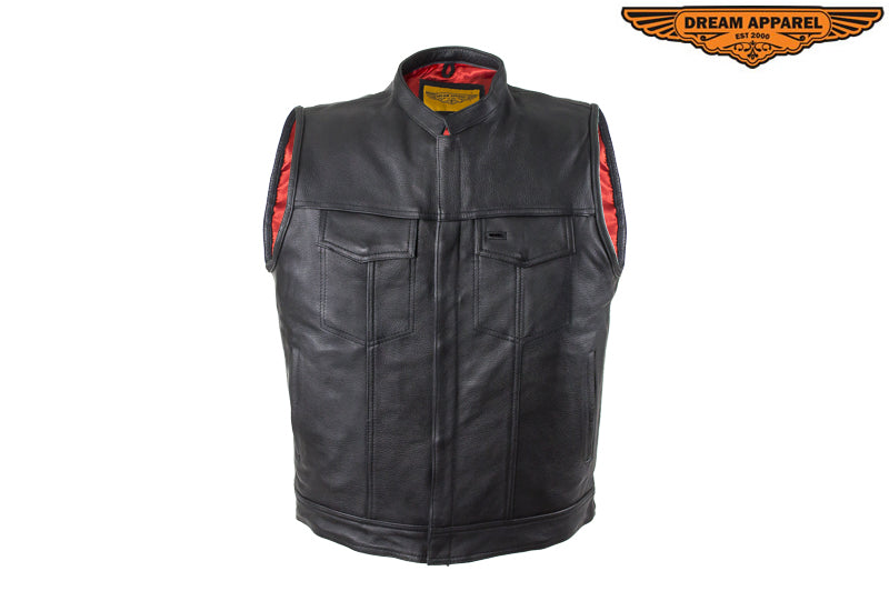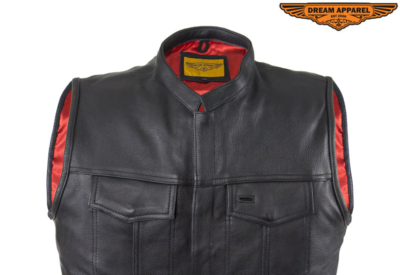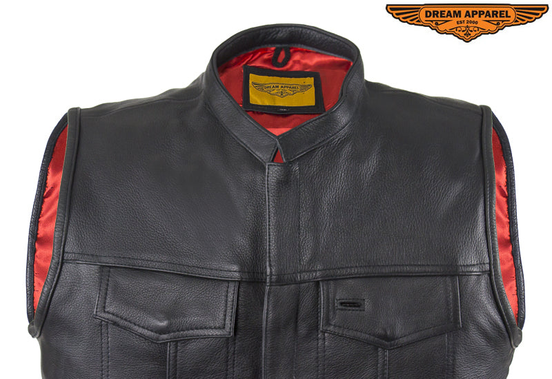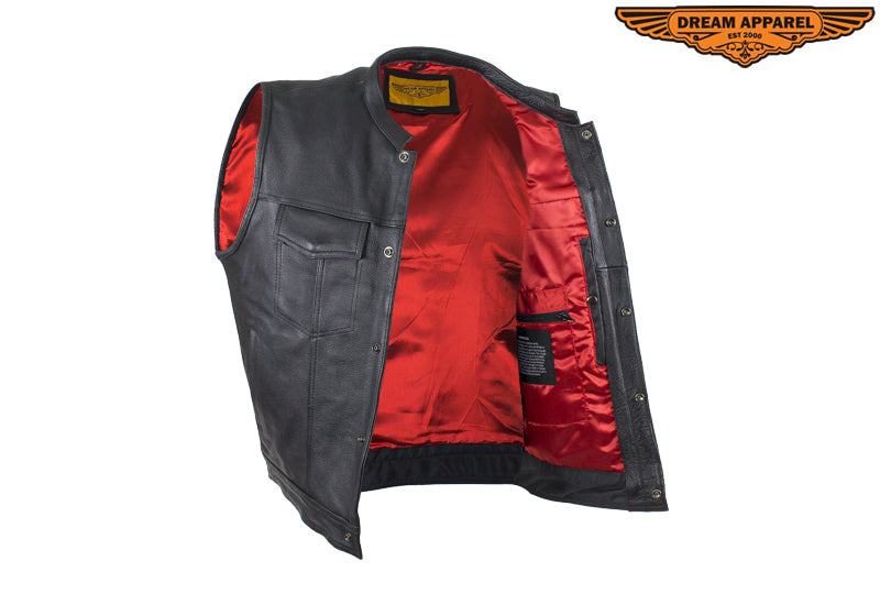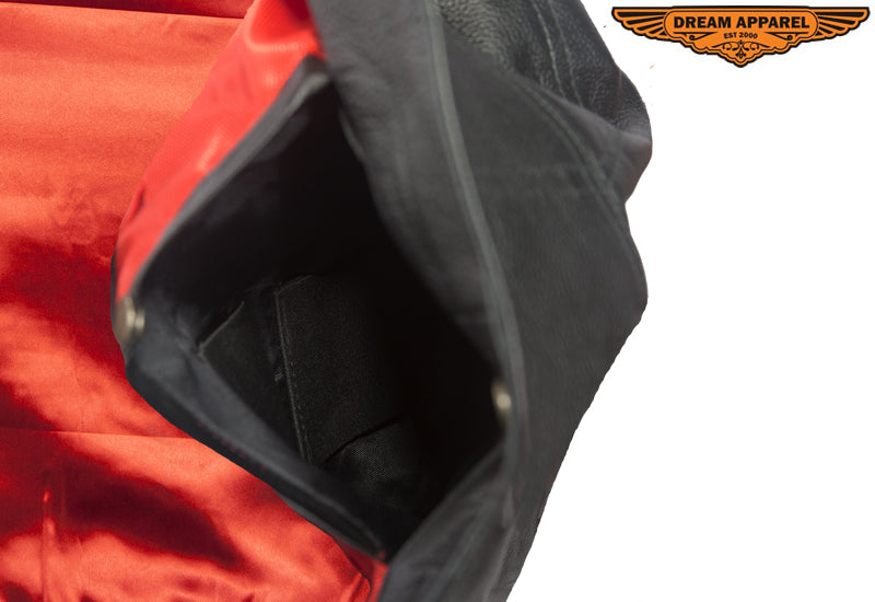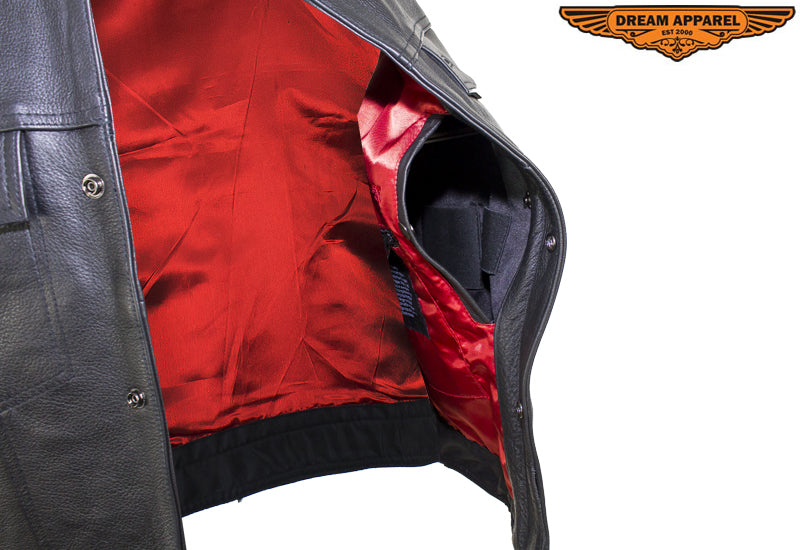 You don't just ride with any crew and you don't support any club, so don't just wear any ordinary vest folks. Dream Apparels Heavy Duty Cowhide Leather Vest is essential for any biker who wants to show off their attitude, this vest is made of high quality cowhide leather and features a solid back panel to show off numerous patches or club colors. With multiple front pockets to store items, sleek collar and front button snap closure you will have no problem throwing this vest on for the next important meeting. Also equipped with a stylish red polyester liner, 2 inside pockets and 2 large gun pockets with snap closure you can gear up right with confidence for any ride.