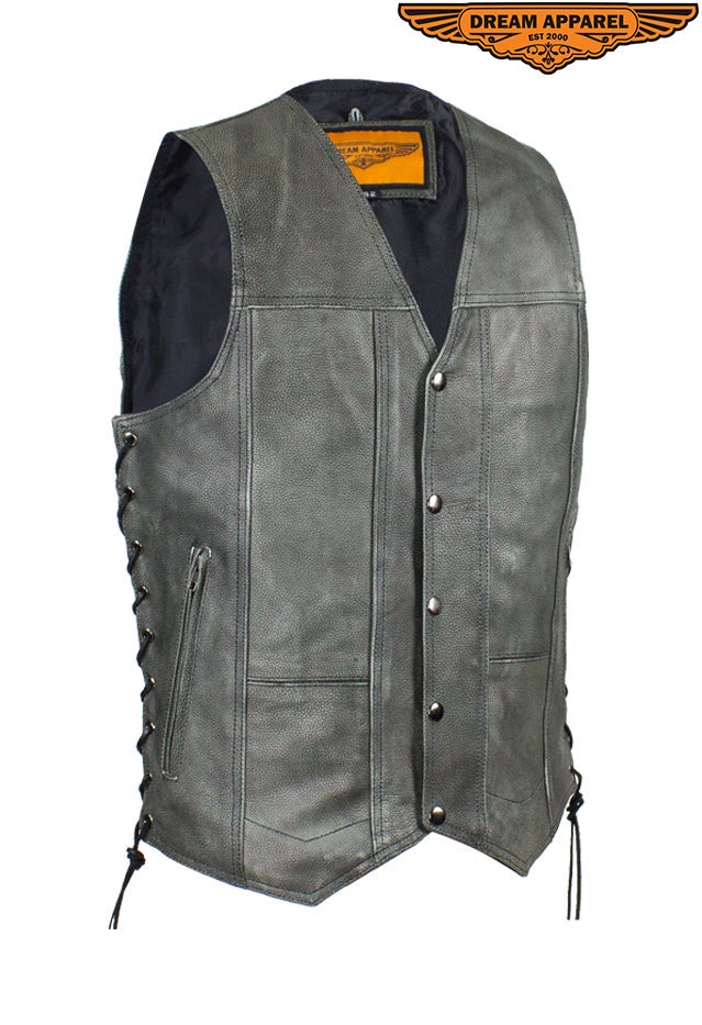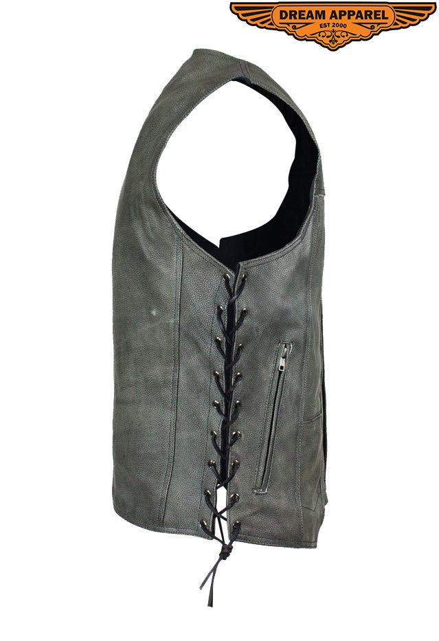 Men's Gray Club Vest with Concealed Carry Pockets & Side Laces