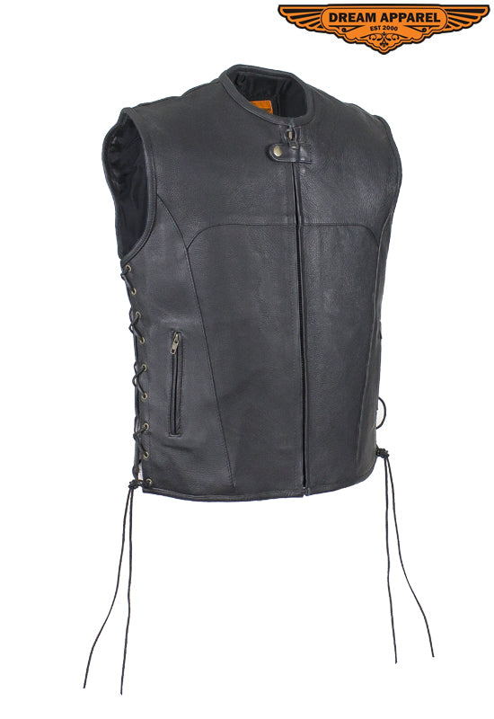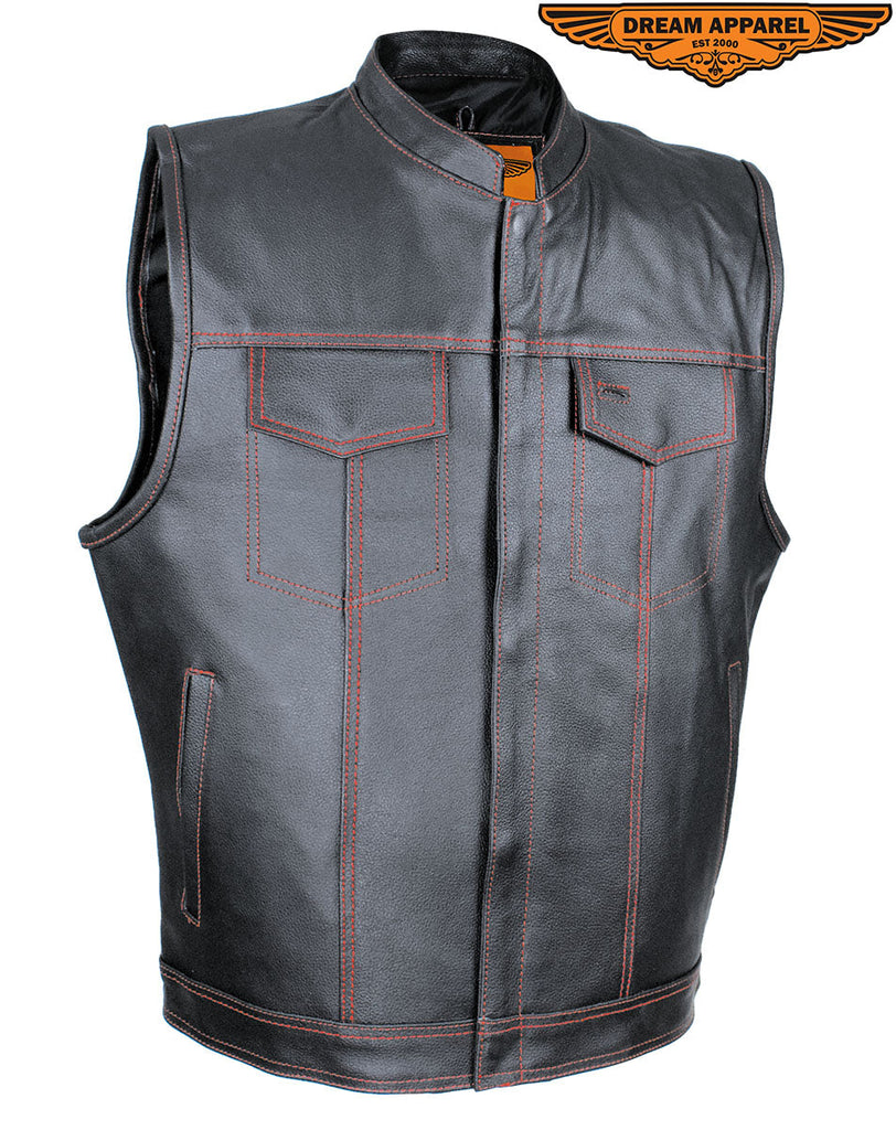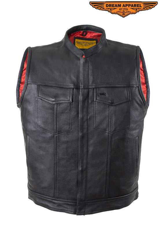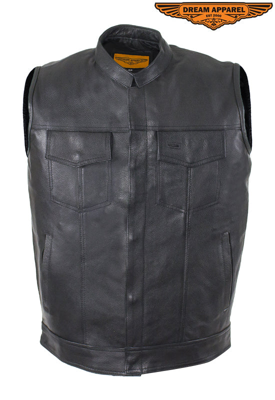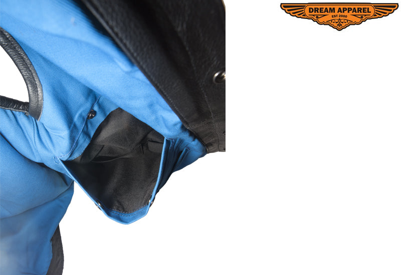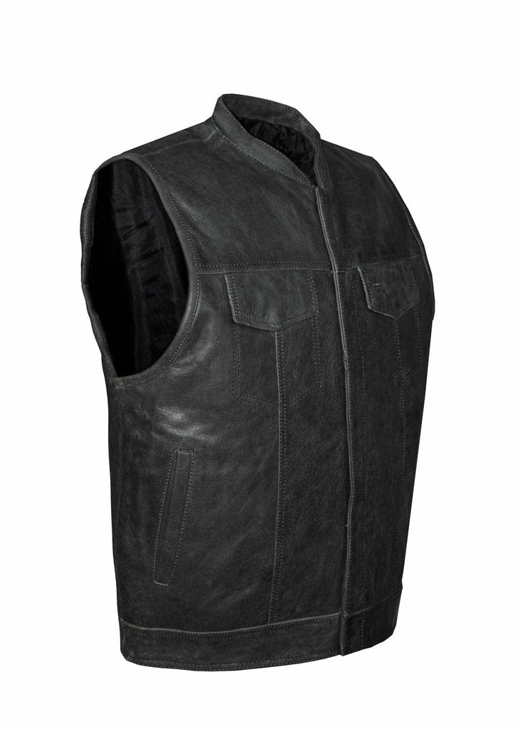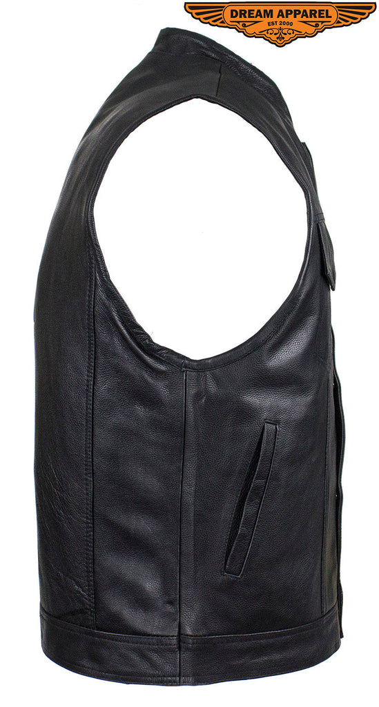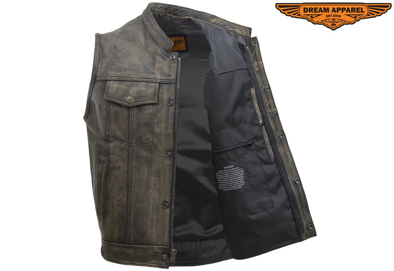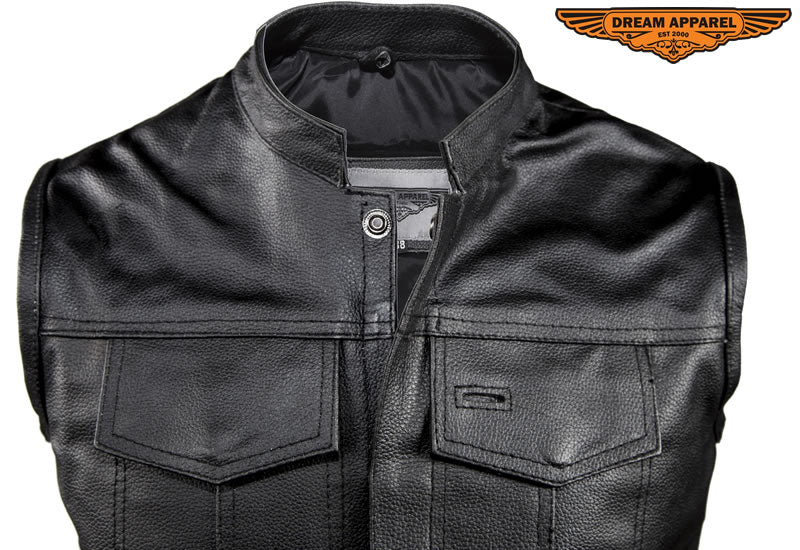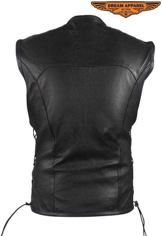 Mens Leather Club Vest With Gun Pocket & Hidden Pockets