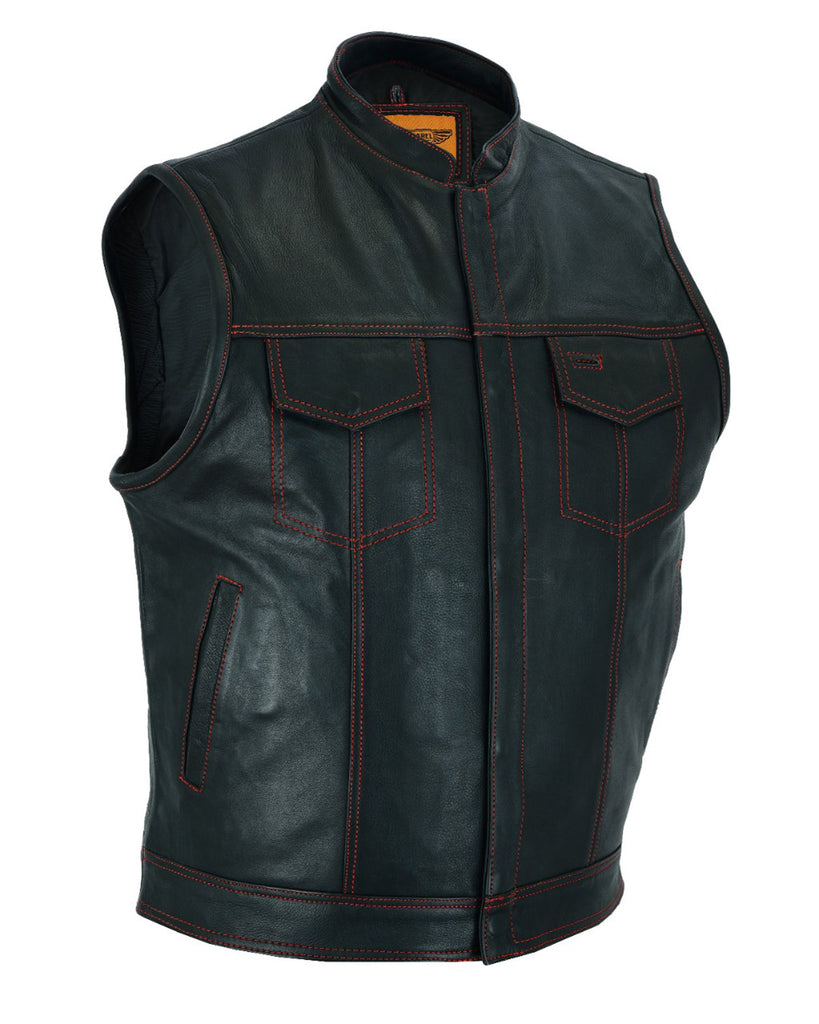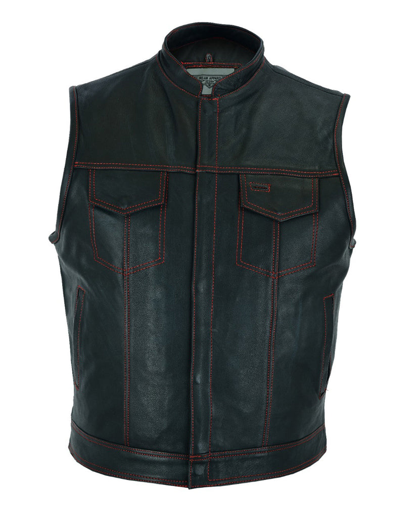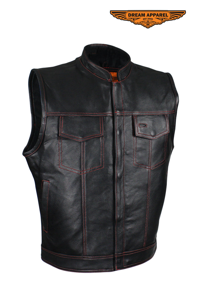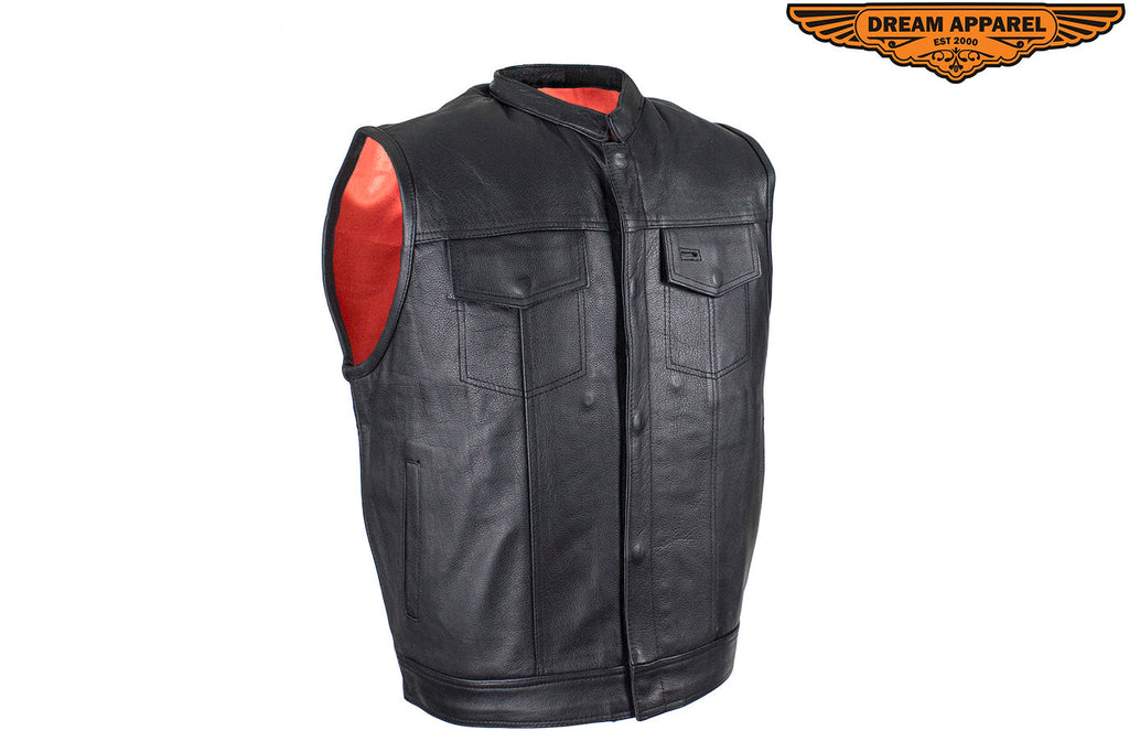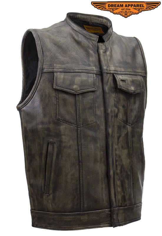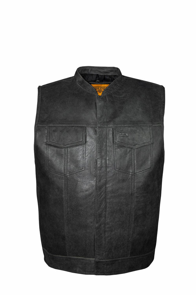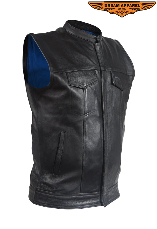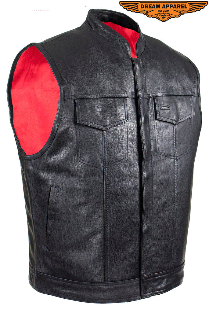 Mens Leather Club Vest With Gun Pocket & Hidden Pockets