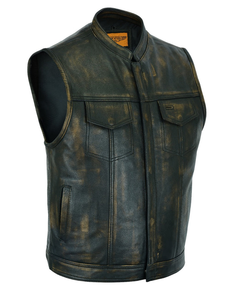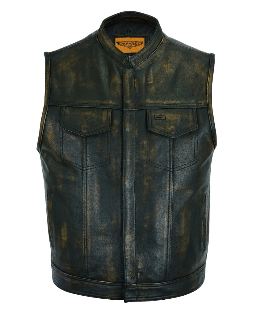 Mens SOA Style Motorcycle Club Vest Naked Distressed Brown Leather