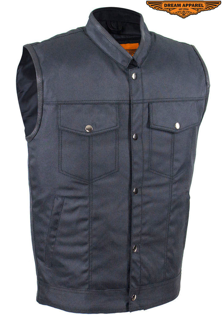 Mens Black Canvas CLUB VEST® with Zipper and Snaps on Front