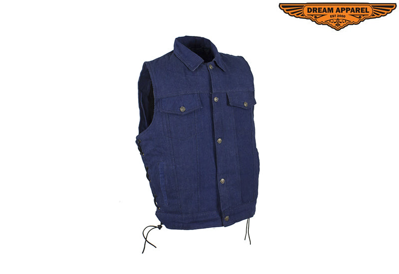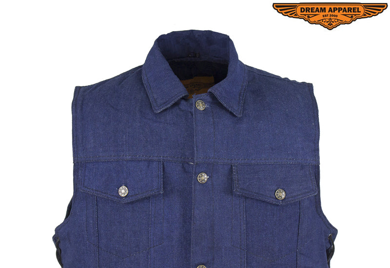 Motorcycle Denim Vest Side Laces V-collar Front Zipper Pockets