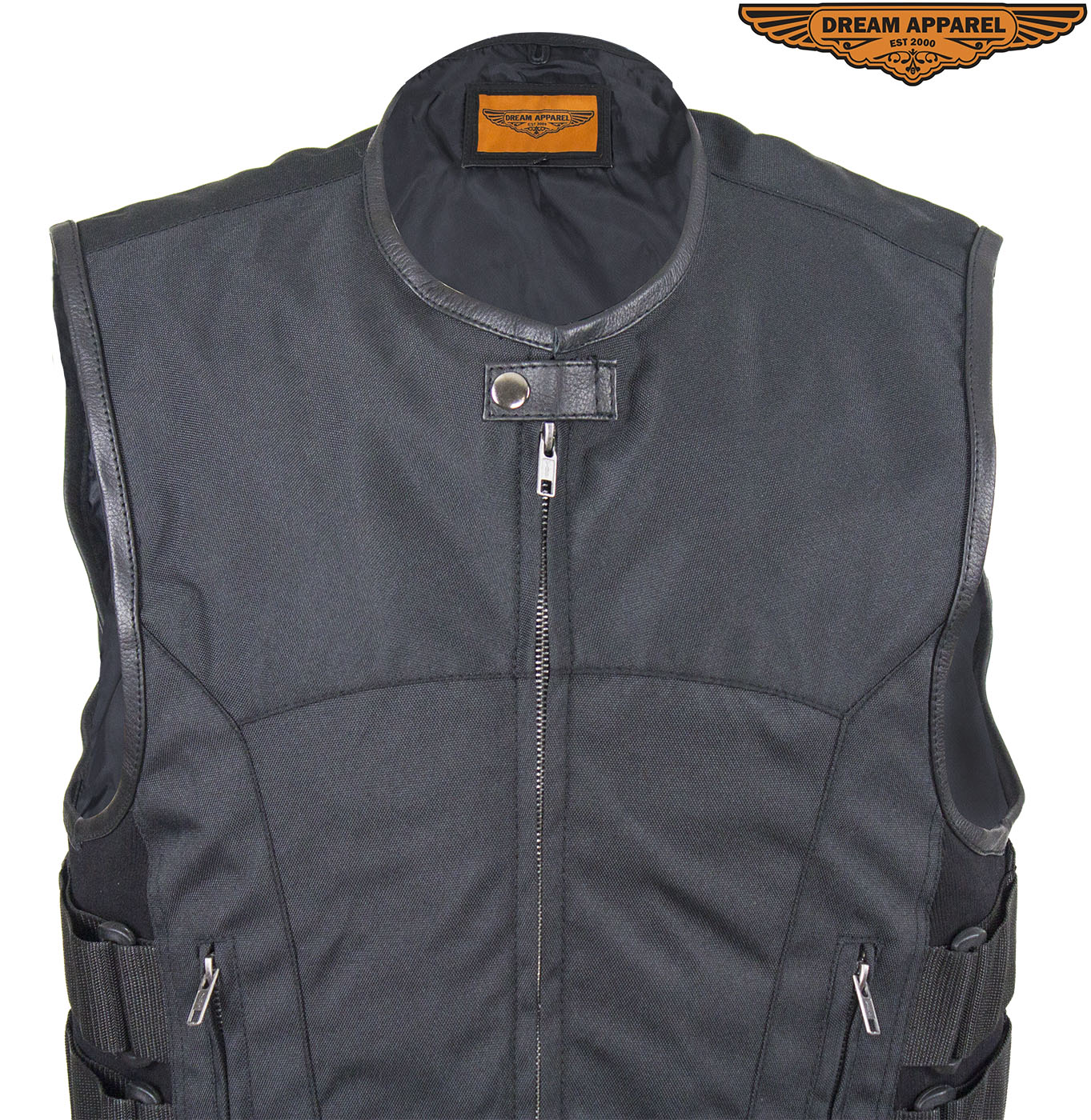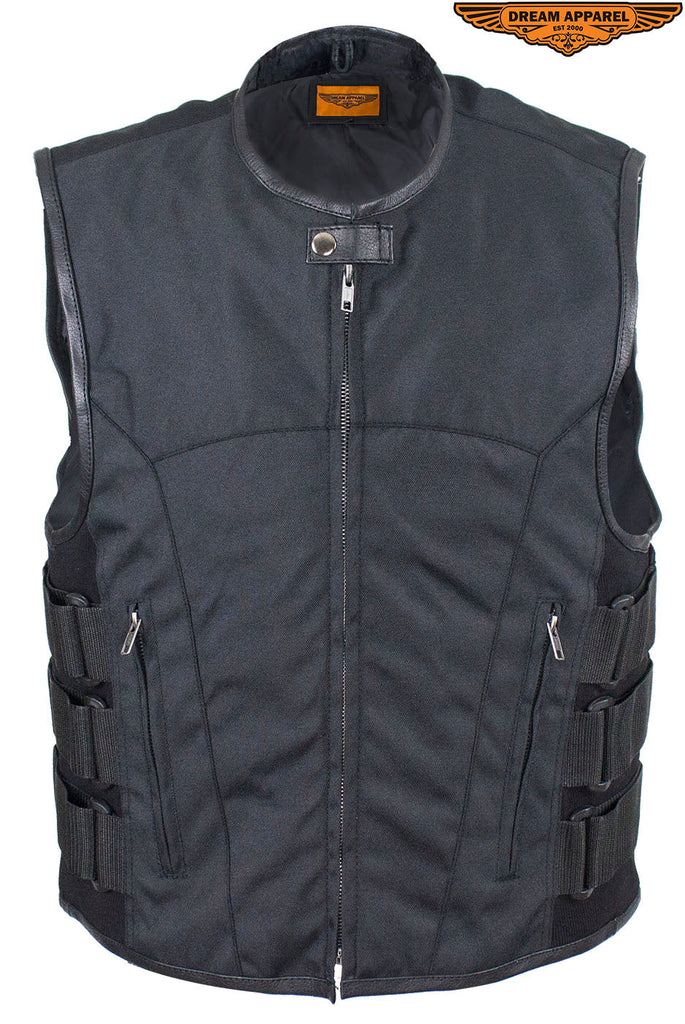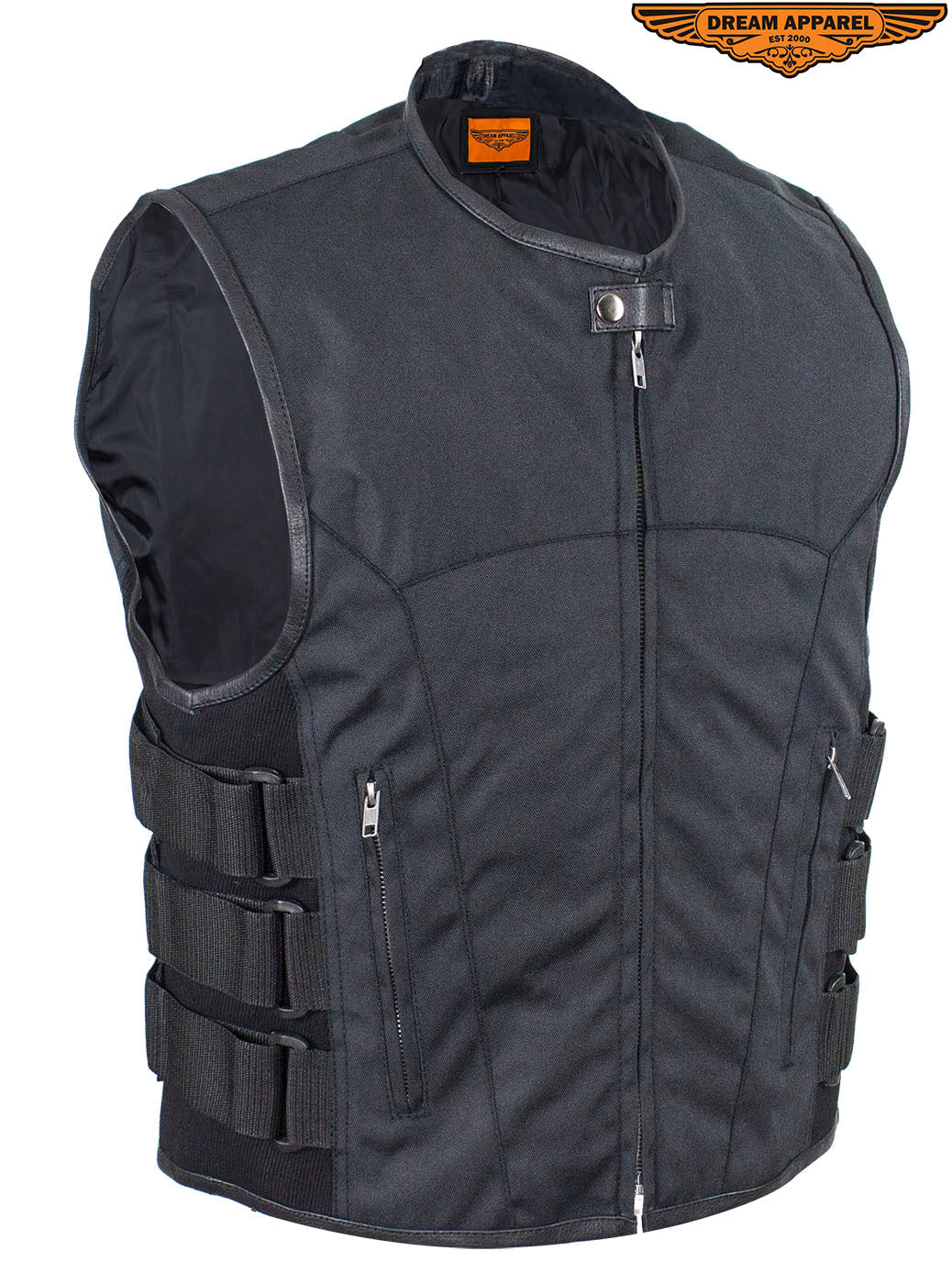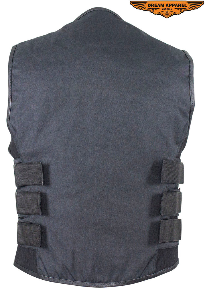 You’re not the type that rides unarmed and Dream Apparel understands. That’s why we’ve made this incredible black textile vest that features two deep concealed gun pockets inside with button snaps and elastic straps, an inside slip pocket, a large interior zippered pocket, and three large adjustable straps on either side you can adjust for comfort. You’ll love how the front zips right up to the single leather buttoned strap at the neck and the two inverted zippered pockets on the waist that let you carry everything else you might need for the ride. Once you transfer your own patches onto the full back panel you’ll wonder how you ever rode without a vest like this.