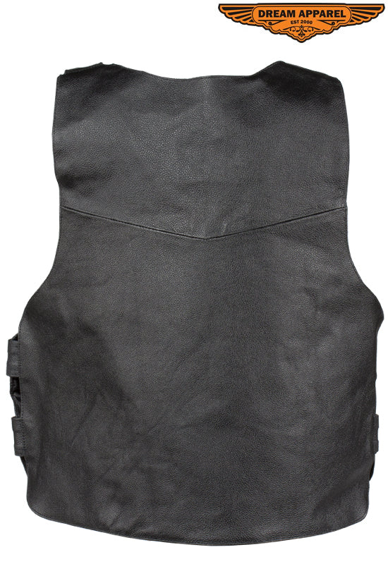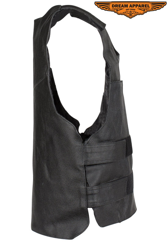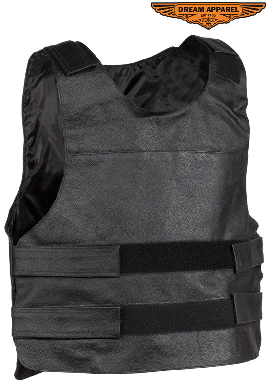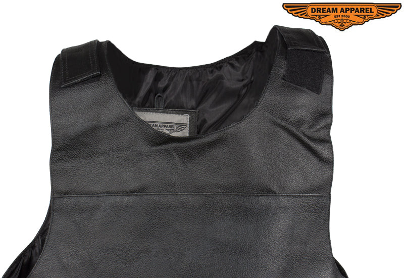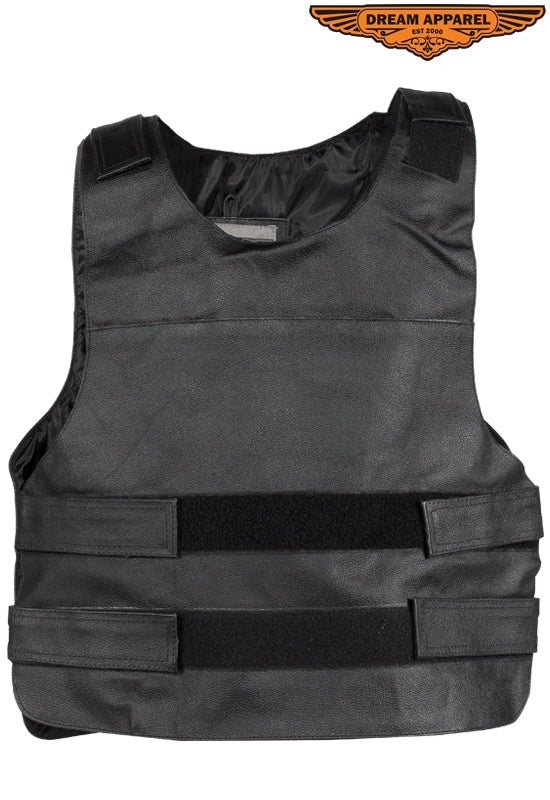 Men's Black Bullet Proof Style Leather Vest with Straps