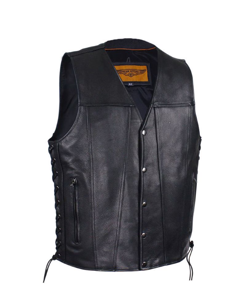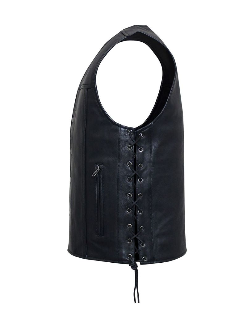 The right to bear arms is a right that was laid down at the foundation of our great nation. Ride in freedom with two deep concealed gun pockets that let you carry any sized handgun that come with elastic straps. Two large zippered pockets on waist provide ample room for everything else. The soft nylon liner, side laces, and button-snap front closure keep you completely comfortable while riding and with the full back panel, you can decorate it however you'd like with your own pins and patches. Naturally, these vests sell out fast, so be sure to get your order placed today.