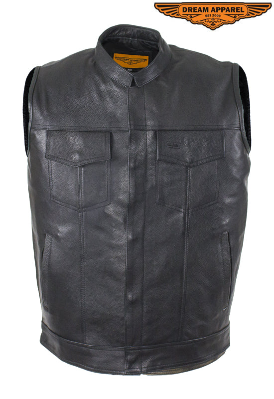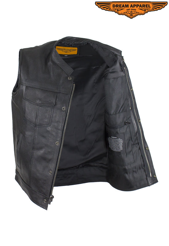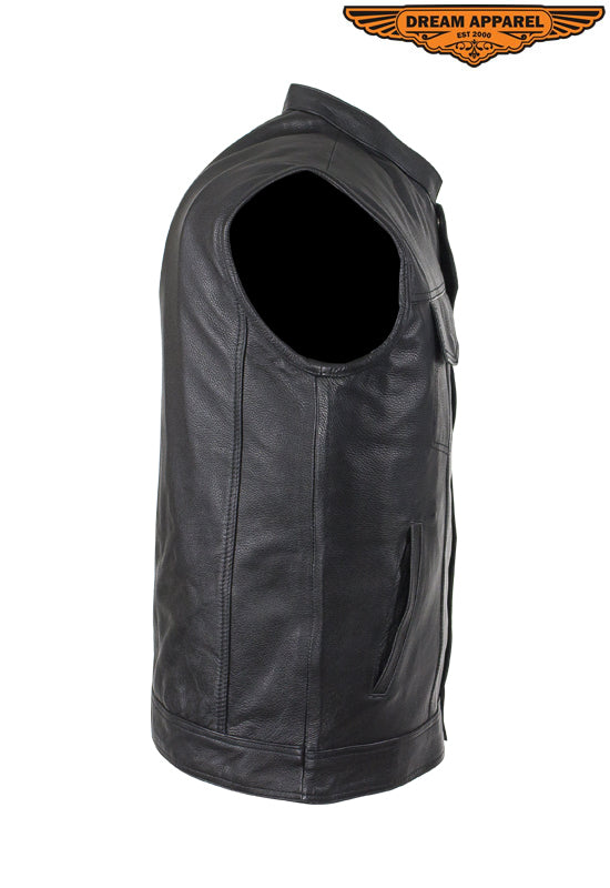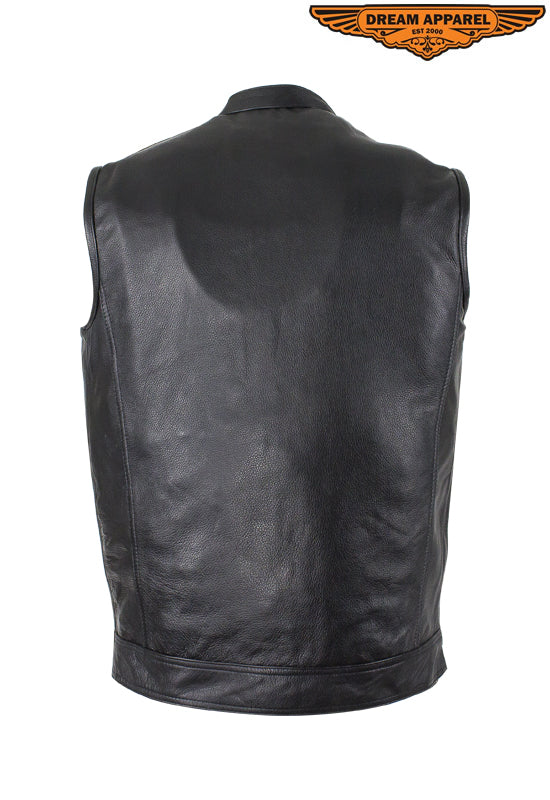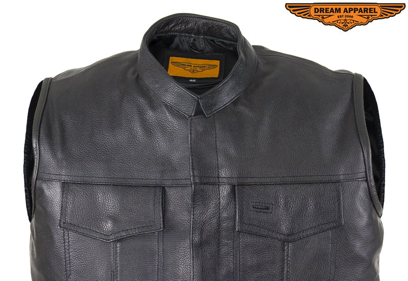 Men's vest made from top grade leather includes 2 front pockets and 4 hidden snaps for maximum fitting to your liking.