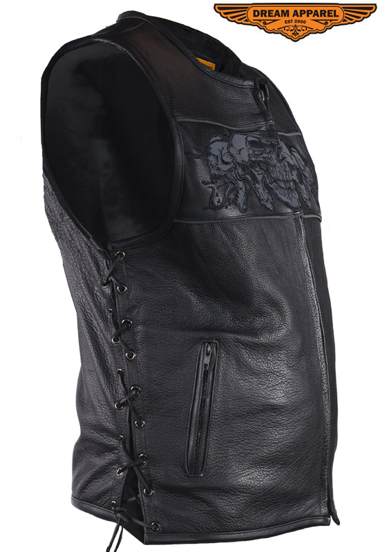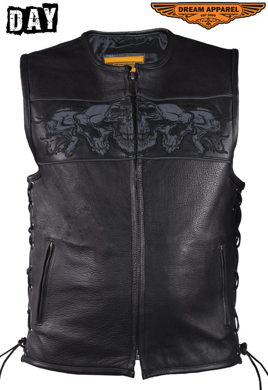 Wanting to go on a night ride has become safer and easier than ever. Assembled from top grade naked cowhide leather with reflective art of hellish skulls to light up in the eve of night for that easy and safe night ride. Fix your laces and get set, you have the road ahead of you so it would be best to stay comfortable throughout it. For extra storage, we’ve aligned the vest with 2 gun pockets inside with the closing power of snaps. This is another must have from Dream Apparel.