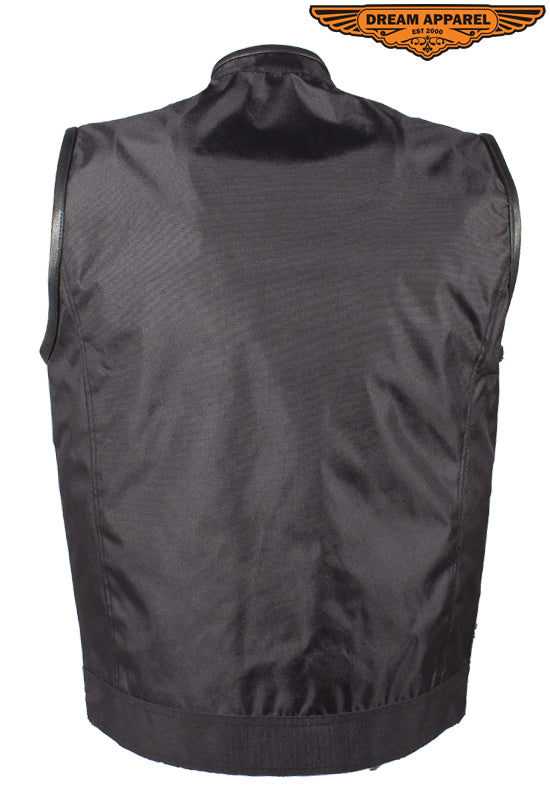 comfortable wherever you go. The two zippered pockets on the waist and two button-snap breast pockets provide great additional carrying capacity. The full back panel allows you to show off your club's colors and patches making this vest the perfect choice for comfort, style, and personal security.