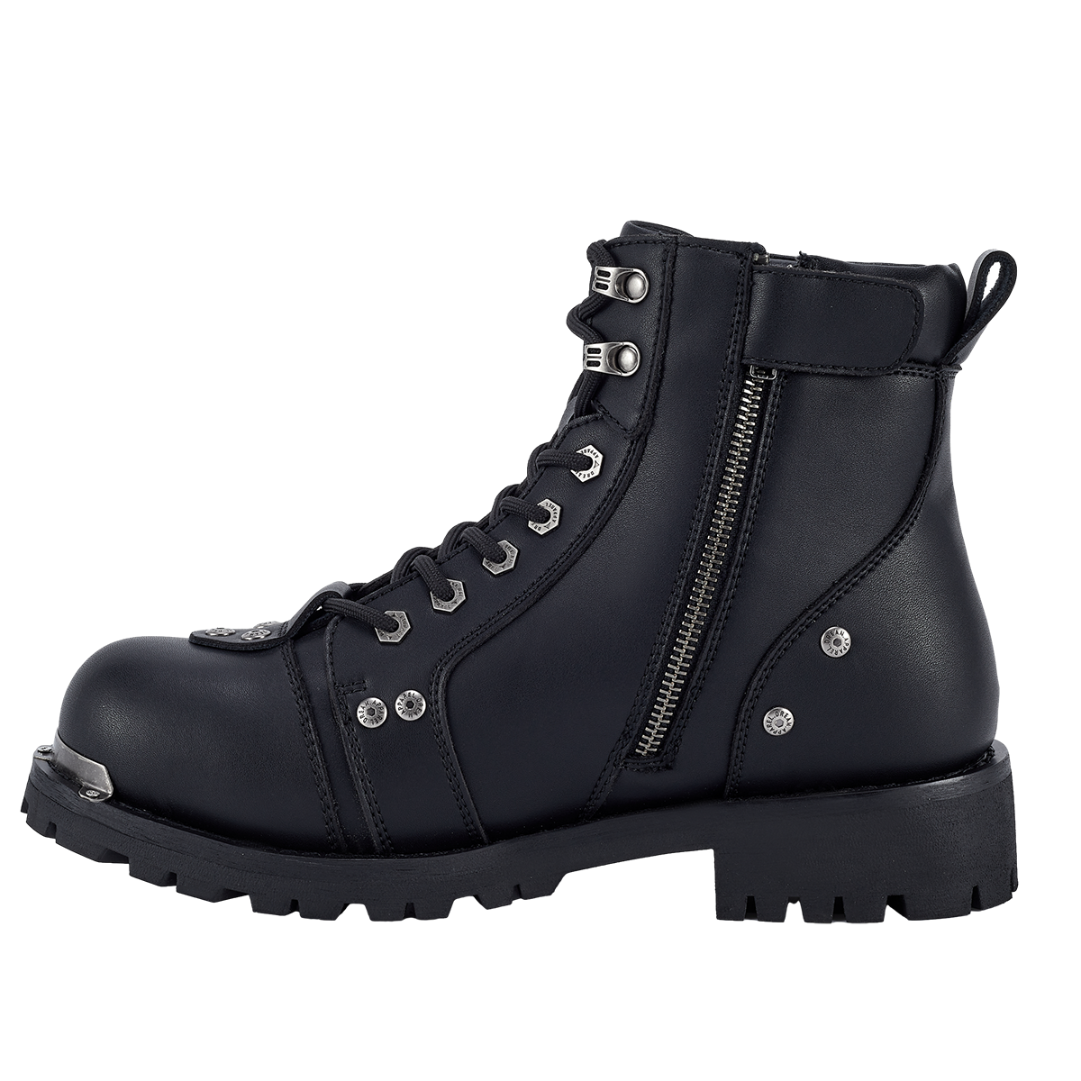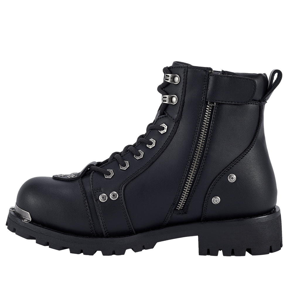 Dream Apparel Men's Motorcycle Riding Boots Waterproof Black Faux Leather Side Zipper Low Heel