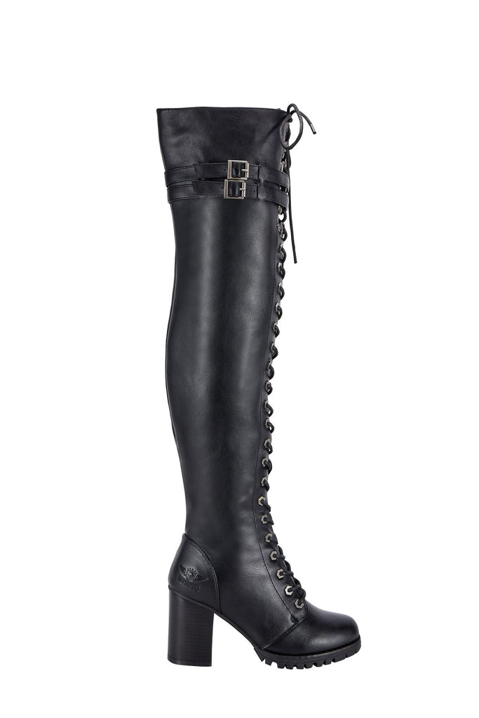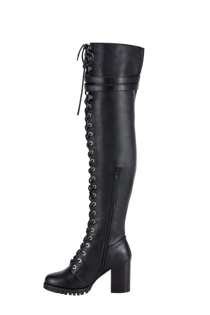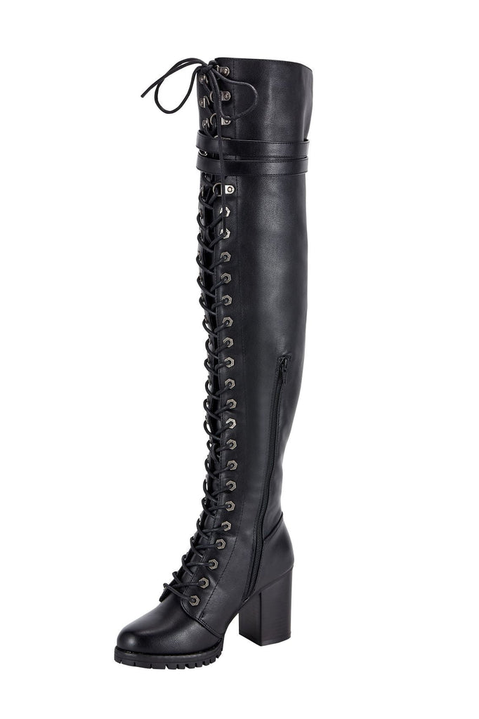These beautiful knee high laced boots by Dream Apparel are the perfect balance of fashion and comfort. When you wear them out, you won't want to take them off. The laces really make the boots pop, giving a very eye catching experience. The boots are indeed heeled, which also can be very appealing. At the top, the two straps allow you to easily loosen and tighten the boots for your most ideal fit. This is a chance you won't want to miss out on, grab yours now.