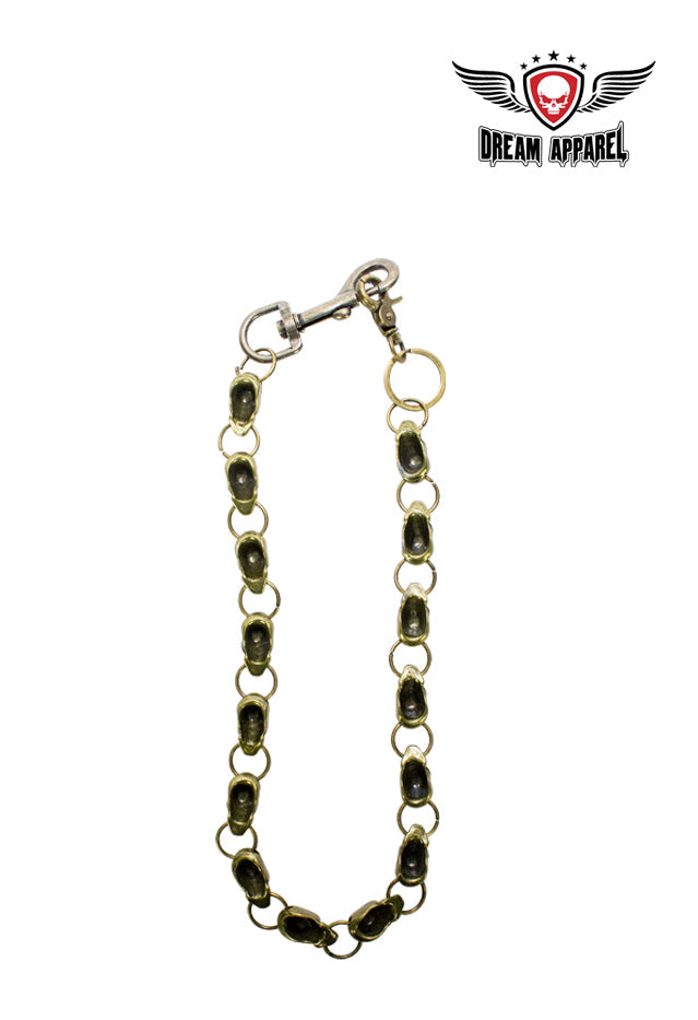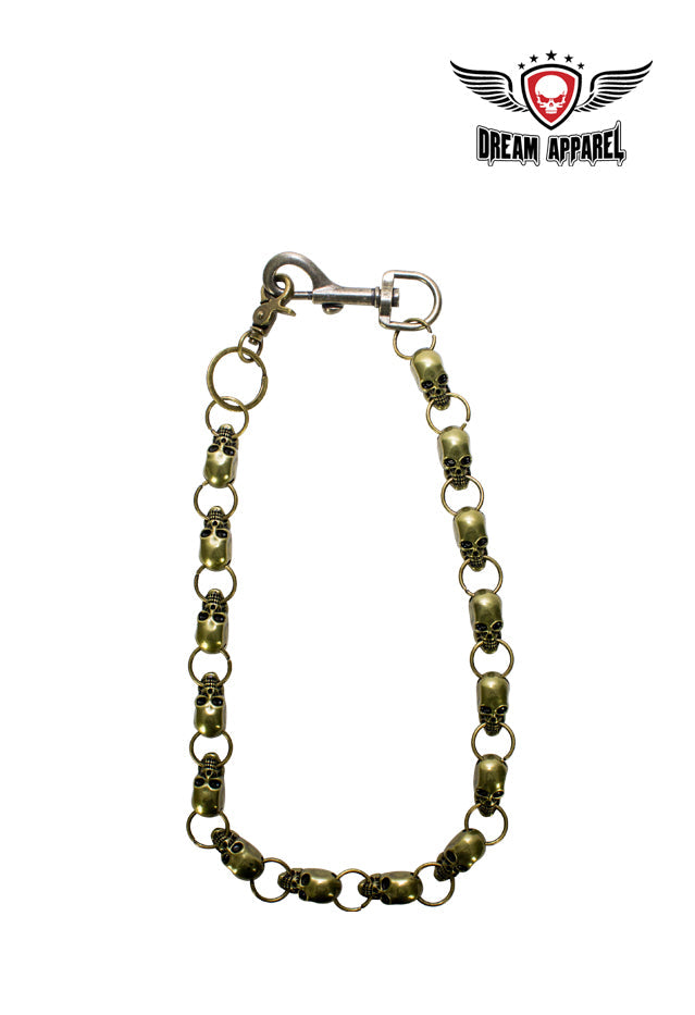 Bikers are always looking to stand out and Dream Apparels the way to do it! This beautifully crafted biker chain gives you an antique finish making it quite the real eye-catcher. This chain gives you a hardcore bikerlook. The chain is made up of 15 small skulls each holding the next with a heavy duty ring. Towards each end, a lobster clasp is placed allowing quick and easy attachment and detachment.To take it a step further we've used two different size clasps which enable you to hook onto almost anything. High quality zinc material covers the chain making it a gorgeous choice. At 25 inches, this chain is long and tough. If you're looking for a biker chain thats going to last long and look good, this ones for you!
